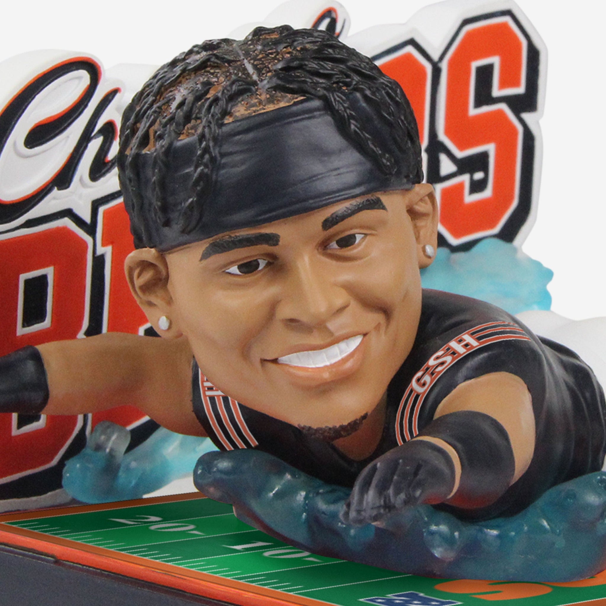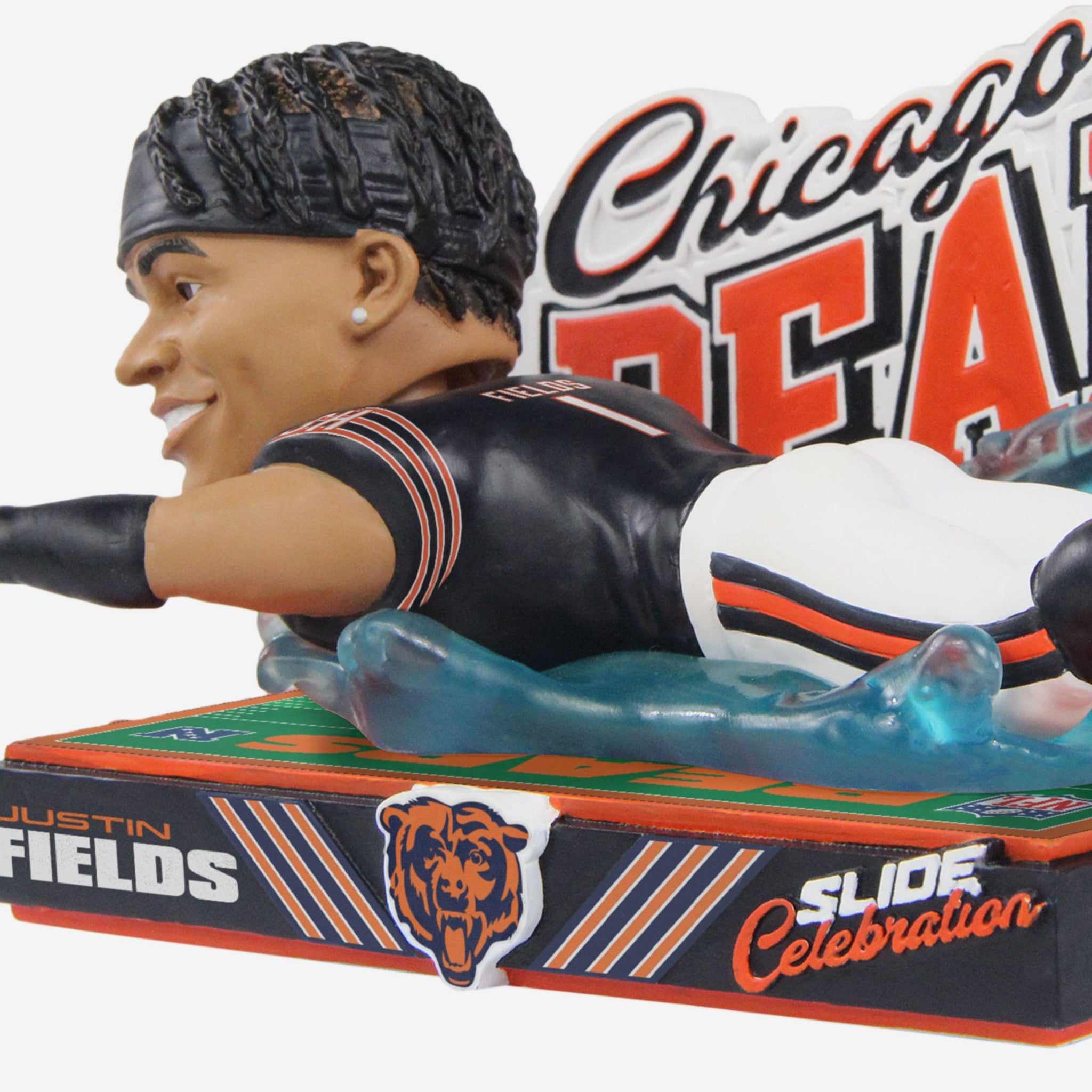 They scored touchdowns. You're always ready to bear down. Now, get ready for a splashdown. Slide into a Week 1 victory celebration with this Justin Fields Chicago Bears Sliding in the Rain Victory Celebration Bobblehead.