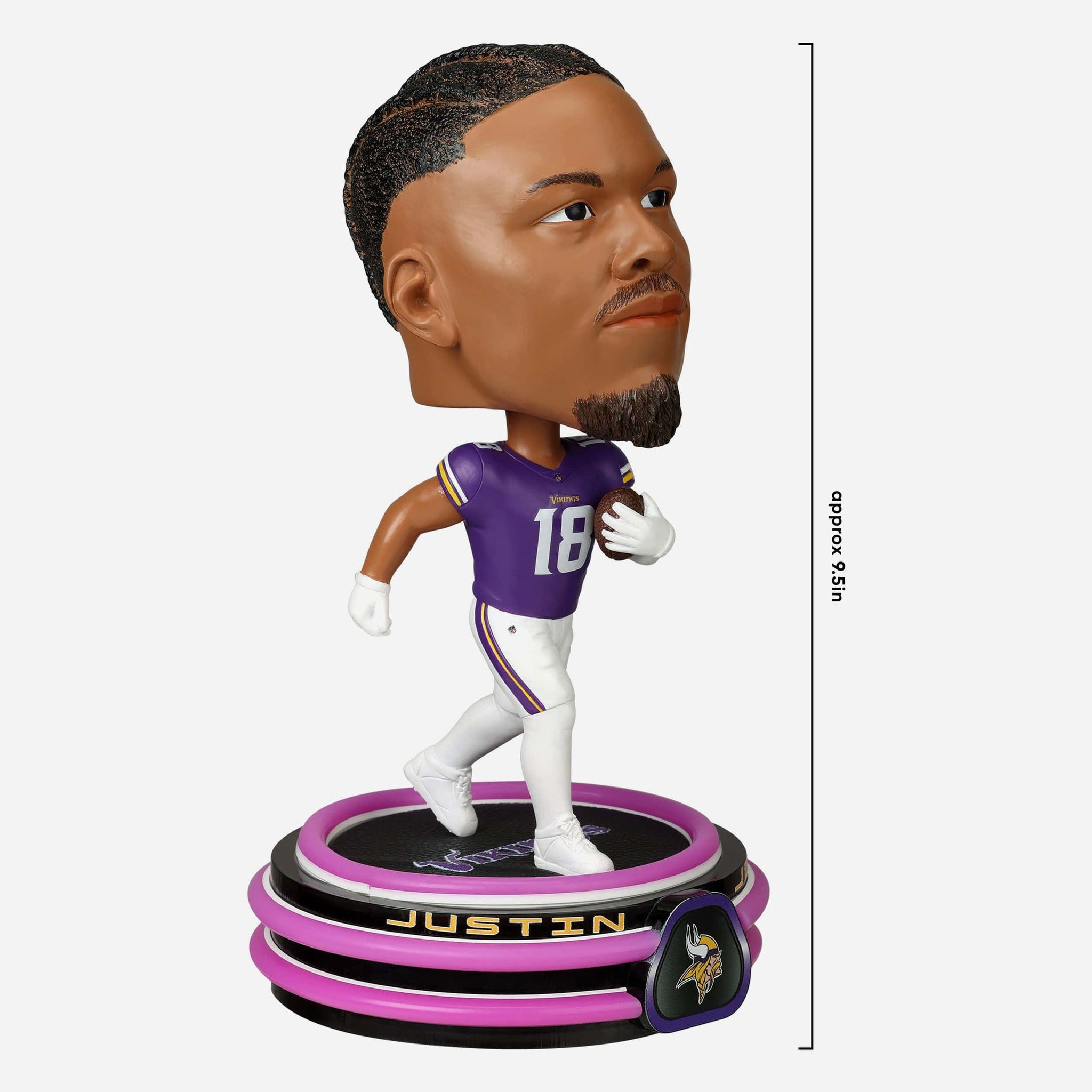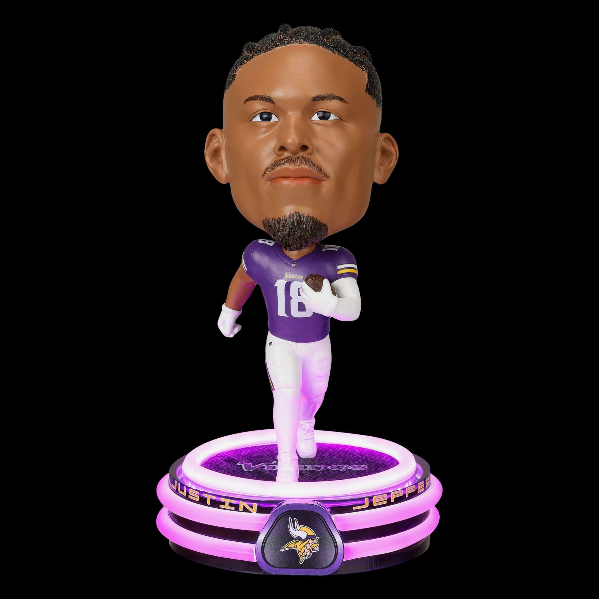 Skol Vikings! Sound the Gjallarhorn and light the way to legendary fandom with the Justin Jefferson Minnesota Vikings LED Neon Bighead Bobblehead.
