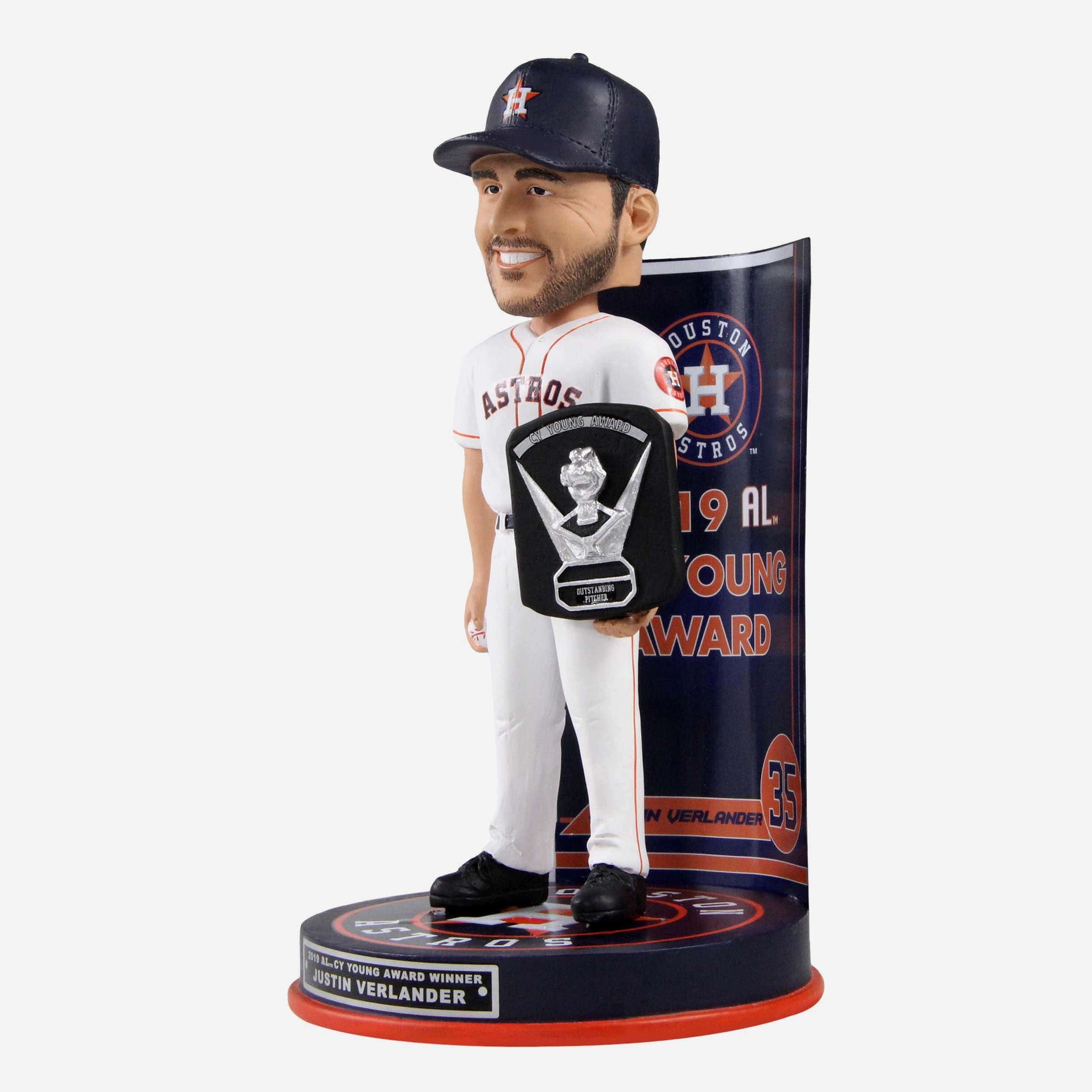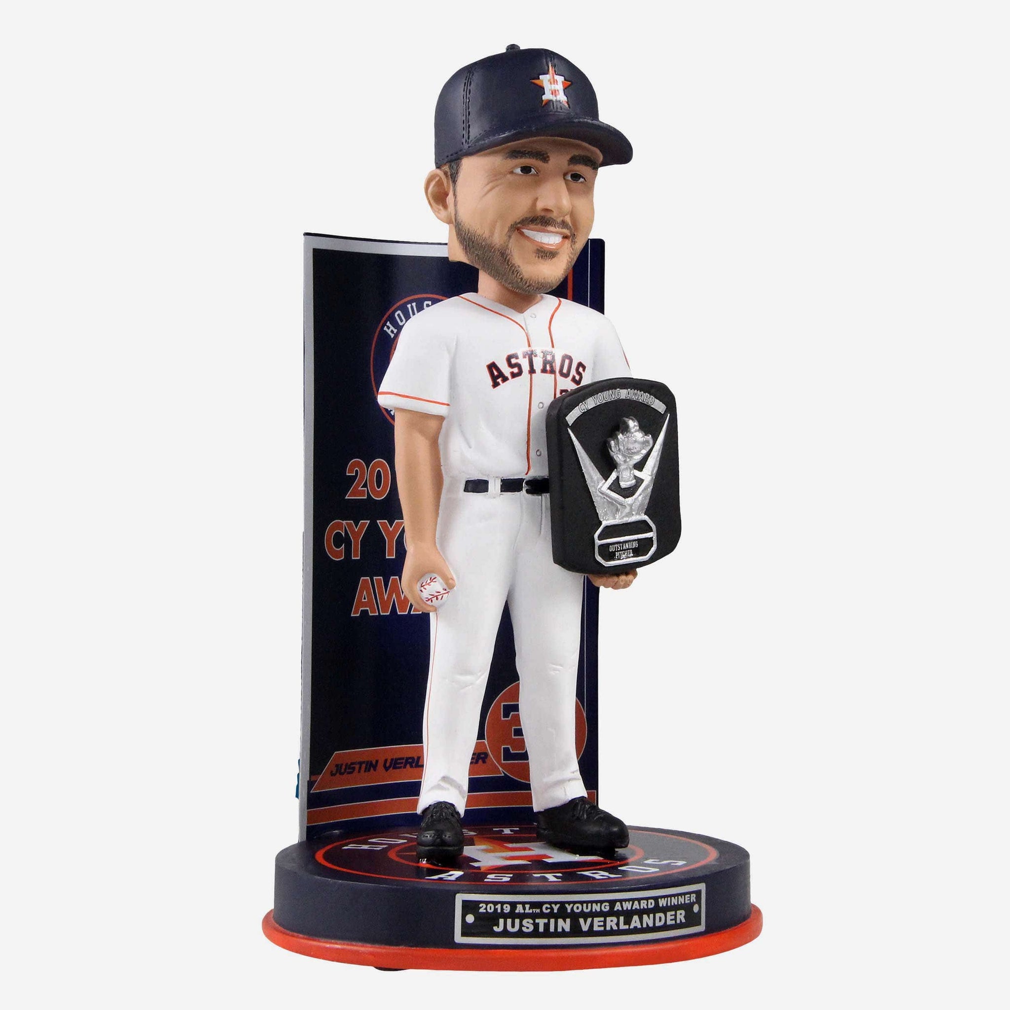They say everything's bigger in Texas. That includes dominant pitching performances. Justin Verlander knows a thing or two about that. It's what won him another Cy Young award. Add some ace stuff to your rotation with this Justin Verlander Houston Astros 2019 American League Cy Young Award Bobblehead.