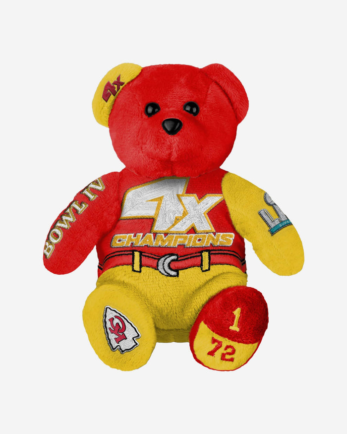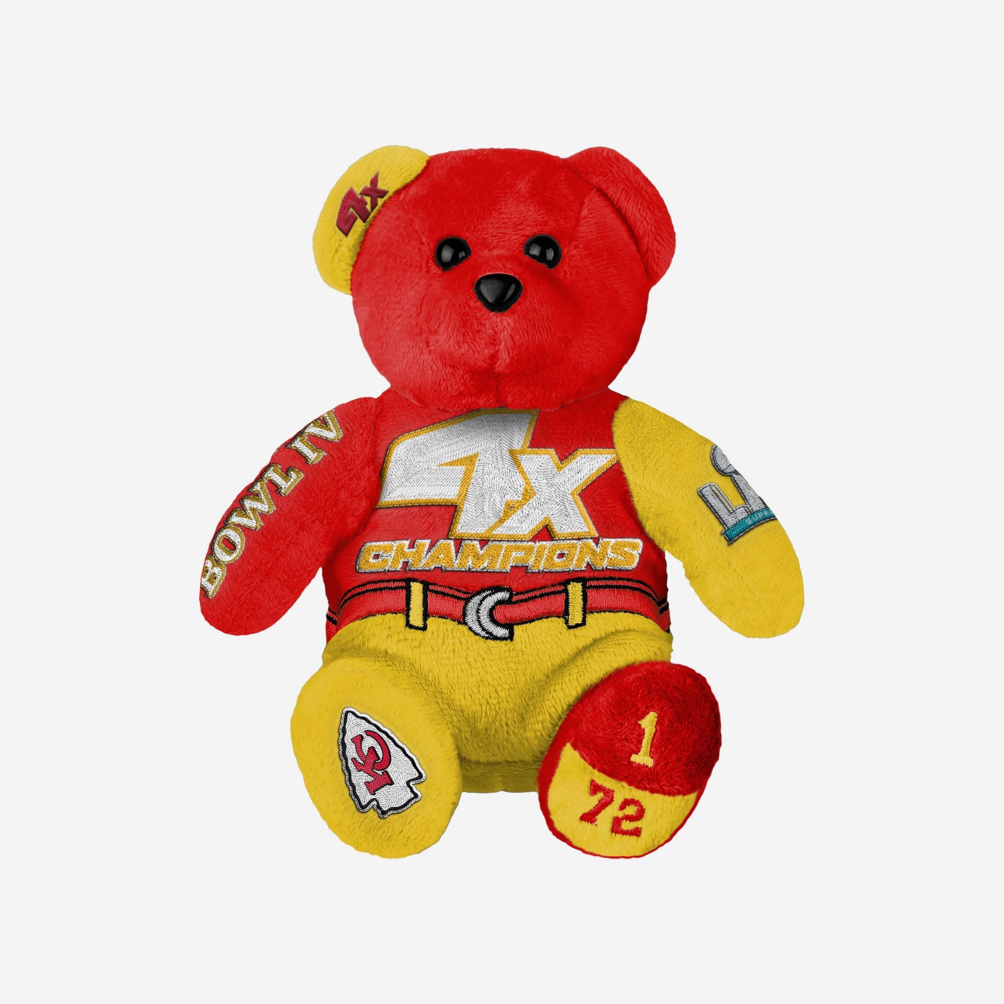 - Plush bear portrayed wearing team colors that will look great in your Kansas City Chiefs collection