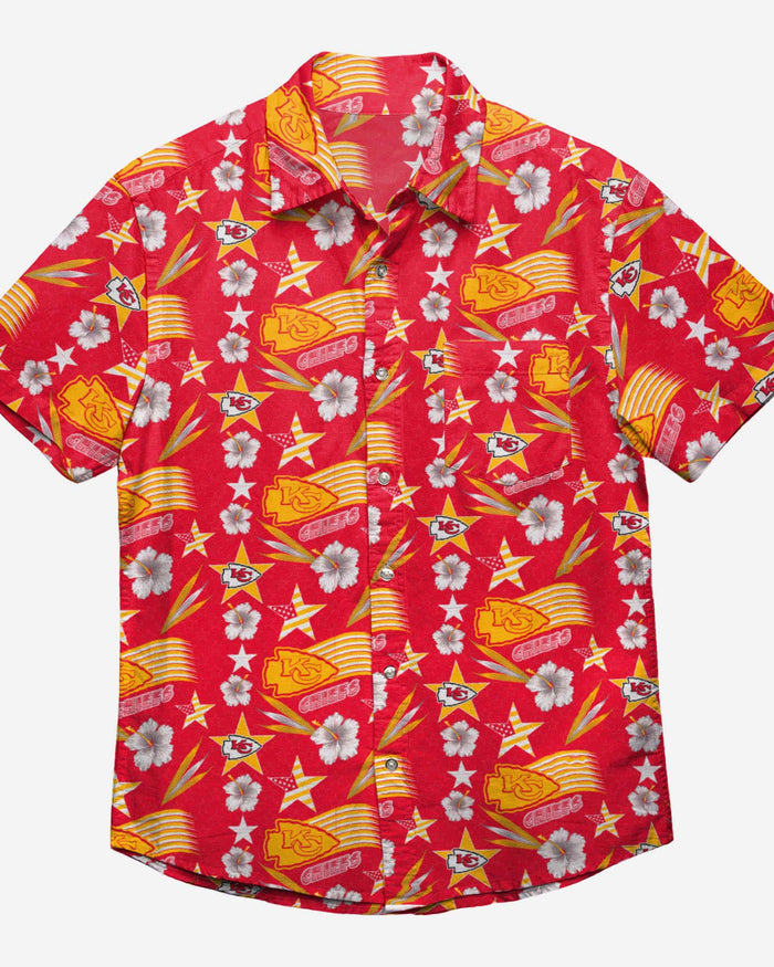 Stars + stripes + team spirit + style = The Kansas City Chiefs Americana Button Up Shirt. Dress to impress, all summer long!