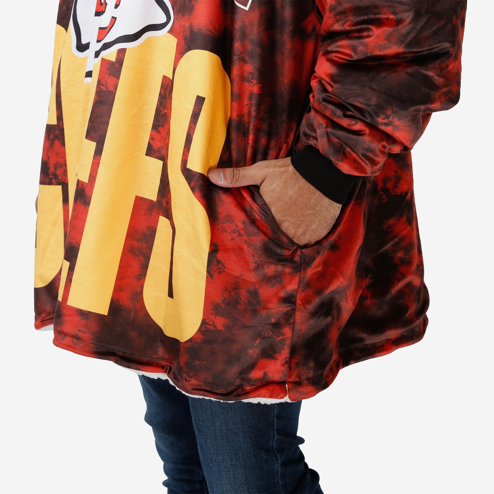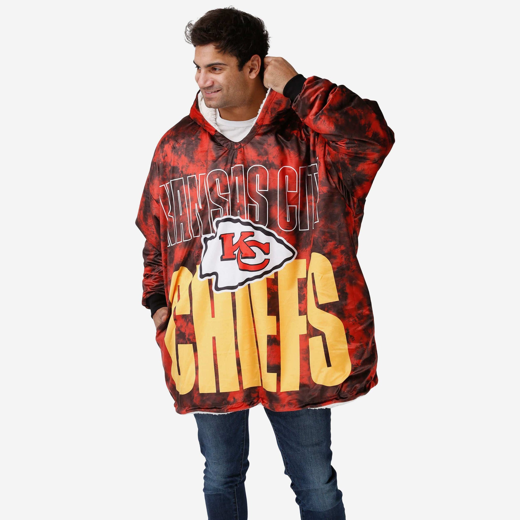 Meet your newest best friend for binge watching. Take your team spirit out of hiding by relaxing in this Kansas City Chiefs Bold Logo Camo Hoodeez!