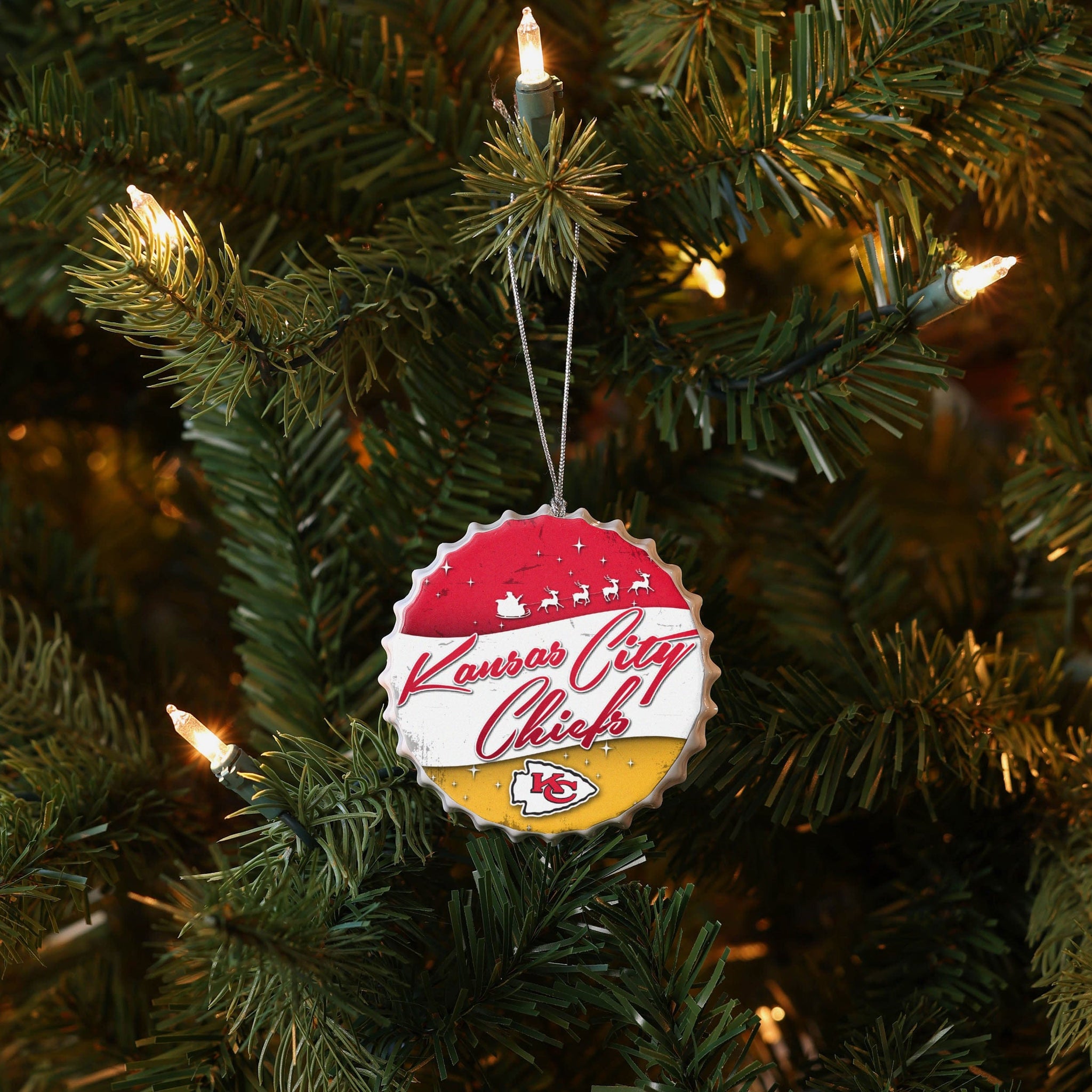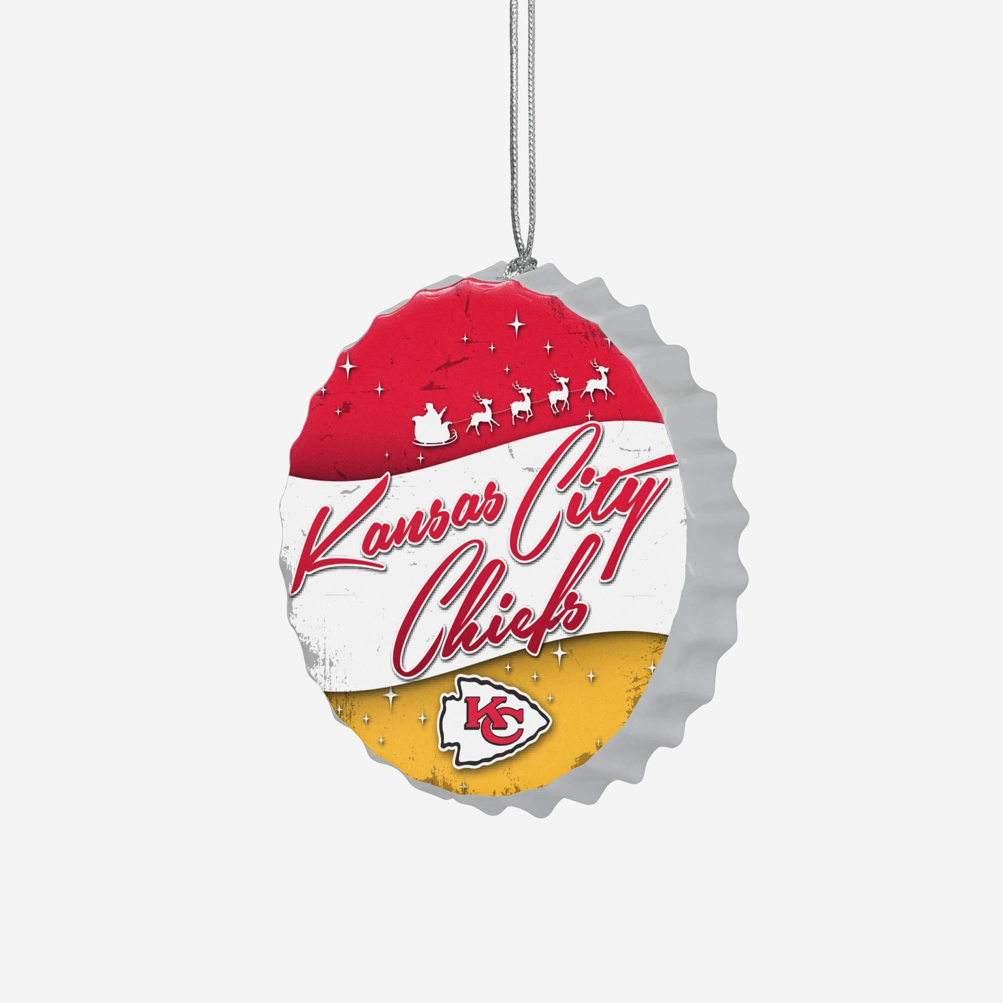 Pop the top on this one-of-a-kind decoration. Cap off your home for the holidays by proudly displaying this Kansas City Chiefs Bottlecap Sign Ornament.