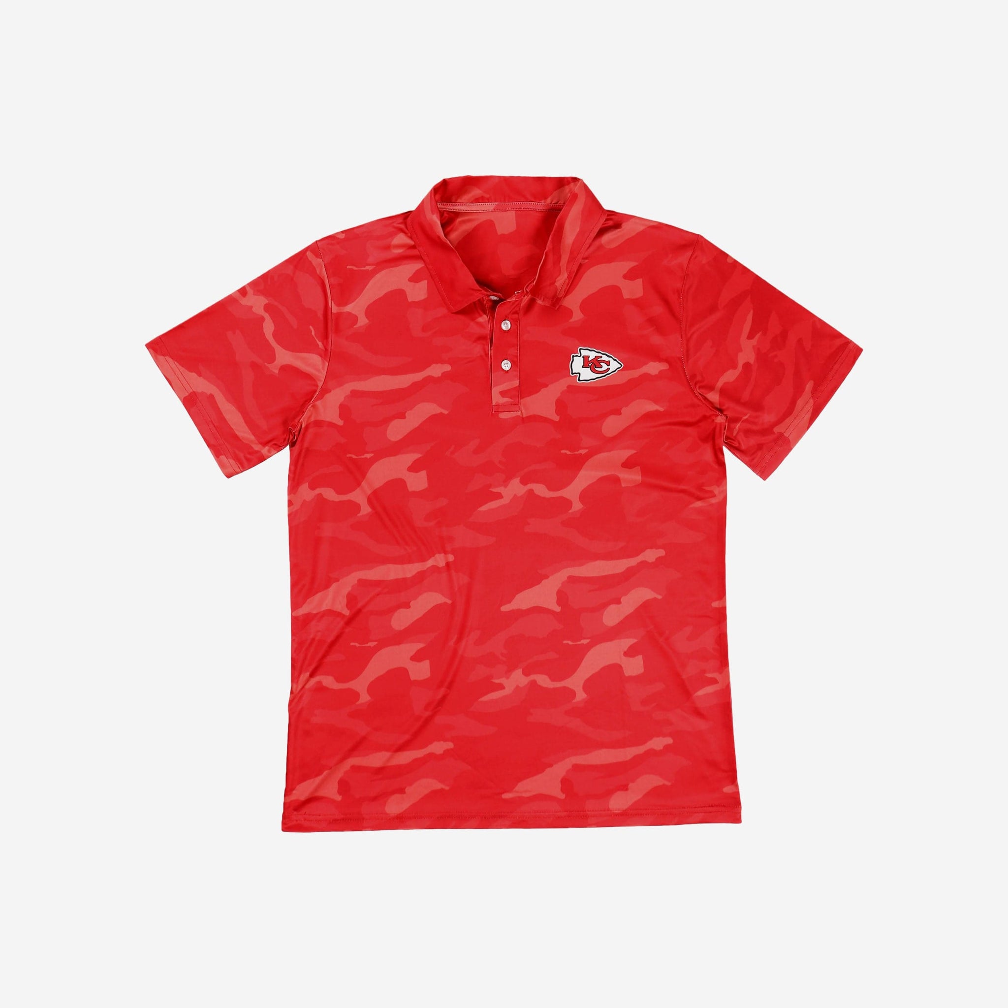 We're not talking about those phony baloney fake fans that still call it "sportsball." True fans like you simply can't hide your team pride. Not even with some camouflage. When you rock this Kansas City Chiefs Color Camo Polyester Polo, you'll see what we mean.