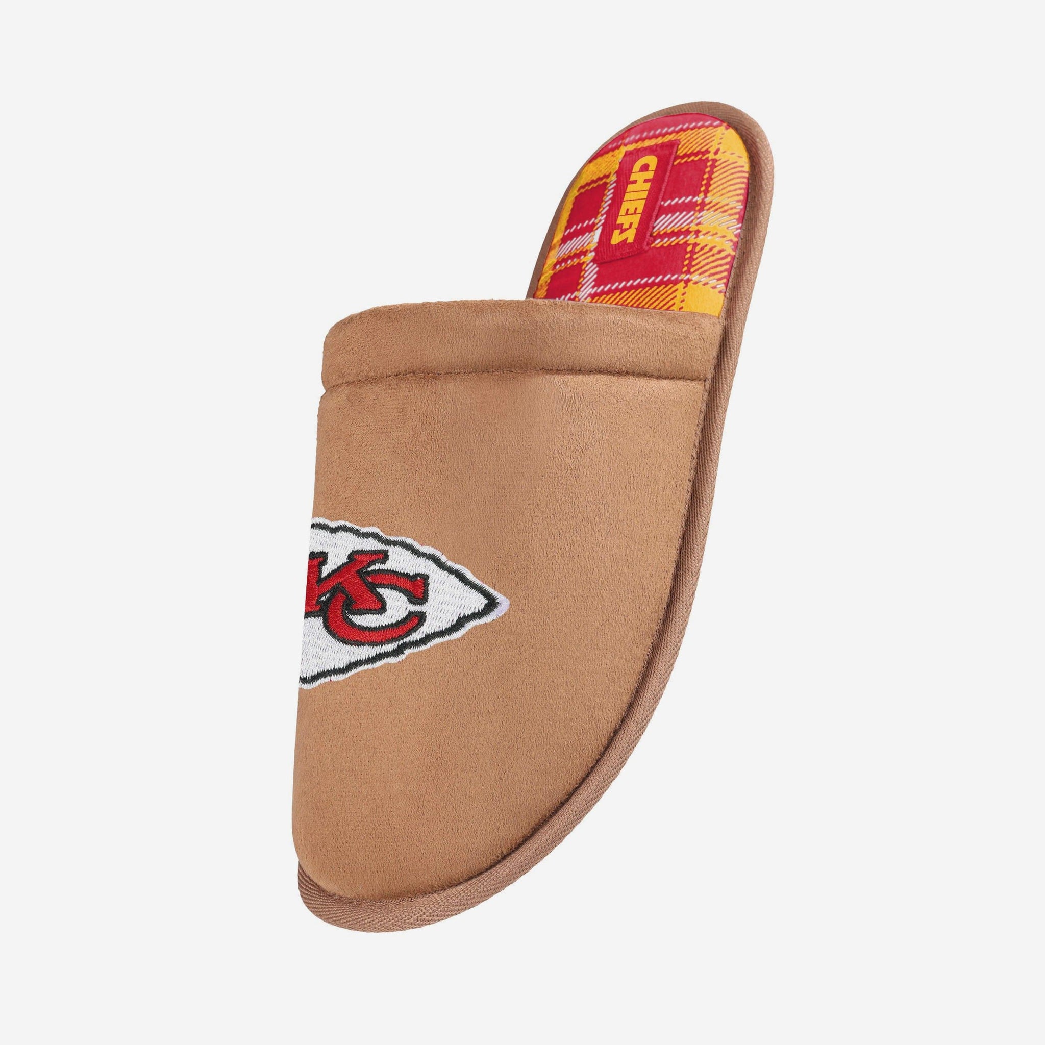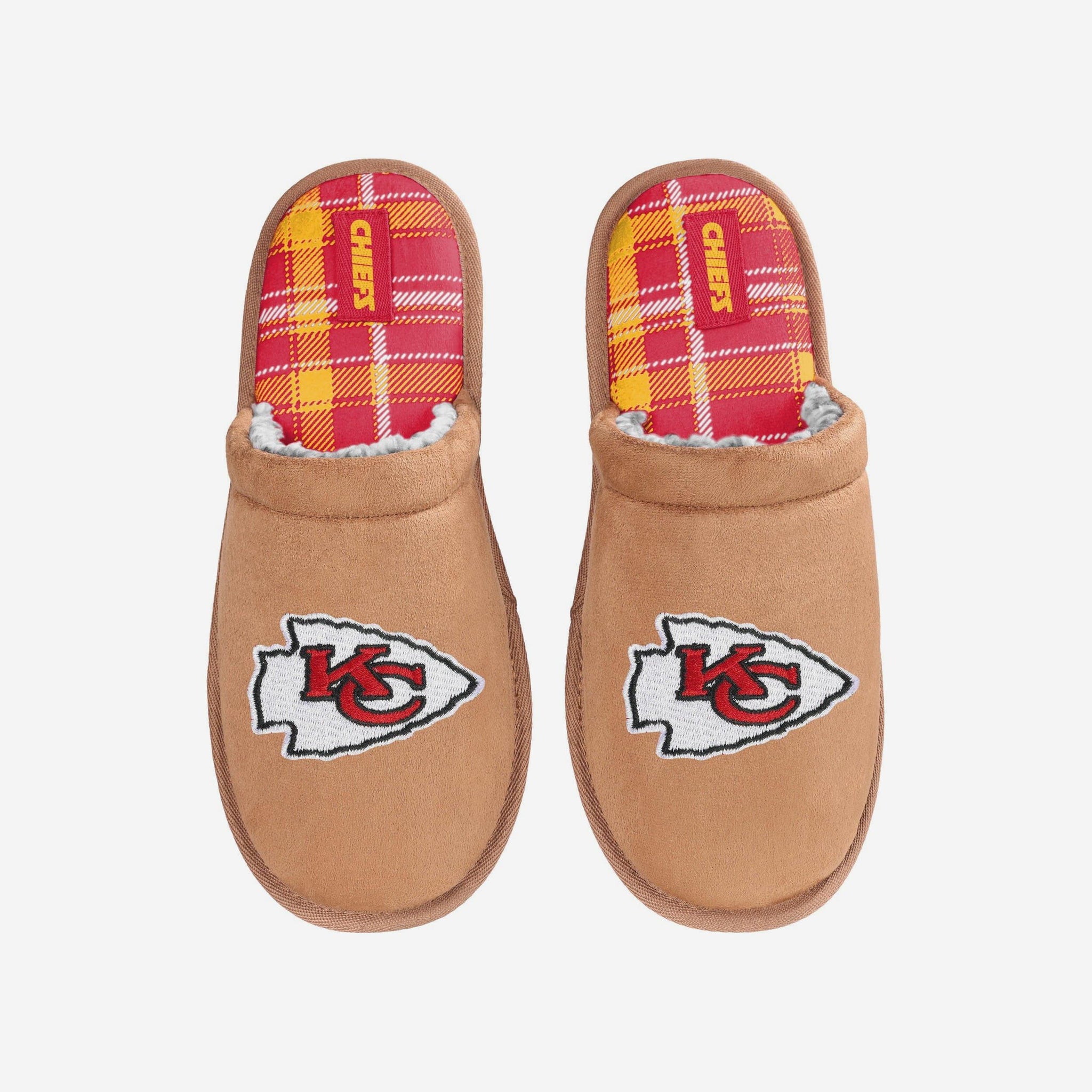 Gameday comfort just got a major upgrade. Slide into cozy fandom and kick back like a champion with the Kansas City Chiefs Flannel Lined Brown Suede Scuff Slippers.