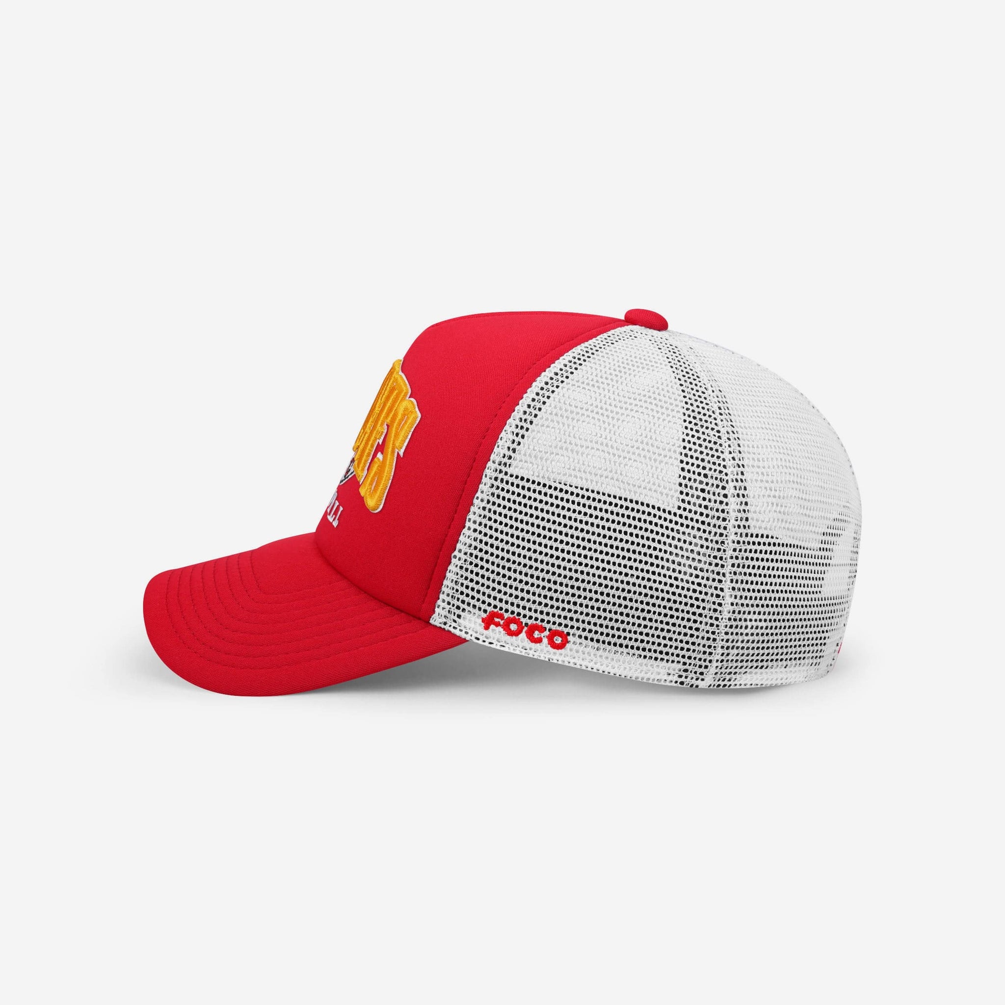 Whether you're behind the wheel of a big rig or in the stands at the game, this Kansas City Chiefs Foam Trucker Cap is just the thing for your outfit. Featuring an embroidered team logo and wordmark display and unstructured design with a curved visor and high crown, you’ll be all set to play the role of trucker and fan. Plus, the mesh panels and adjustable snapback snap closure makes this hat perfect for any adventure.