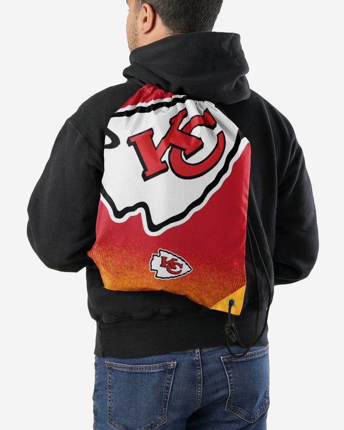 Gym essentials: Water, headphones, deodorant, towel. Oh yeah, and your team spirit. This Kansas City Chiefs Gradient Drawstring Backpack will take care of the team spirit, and can carry all the other stuff. Flex that fandom!