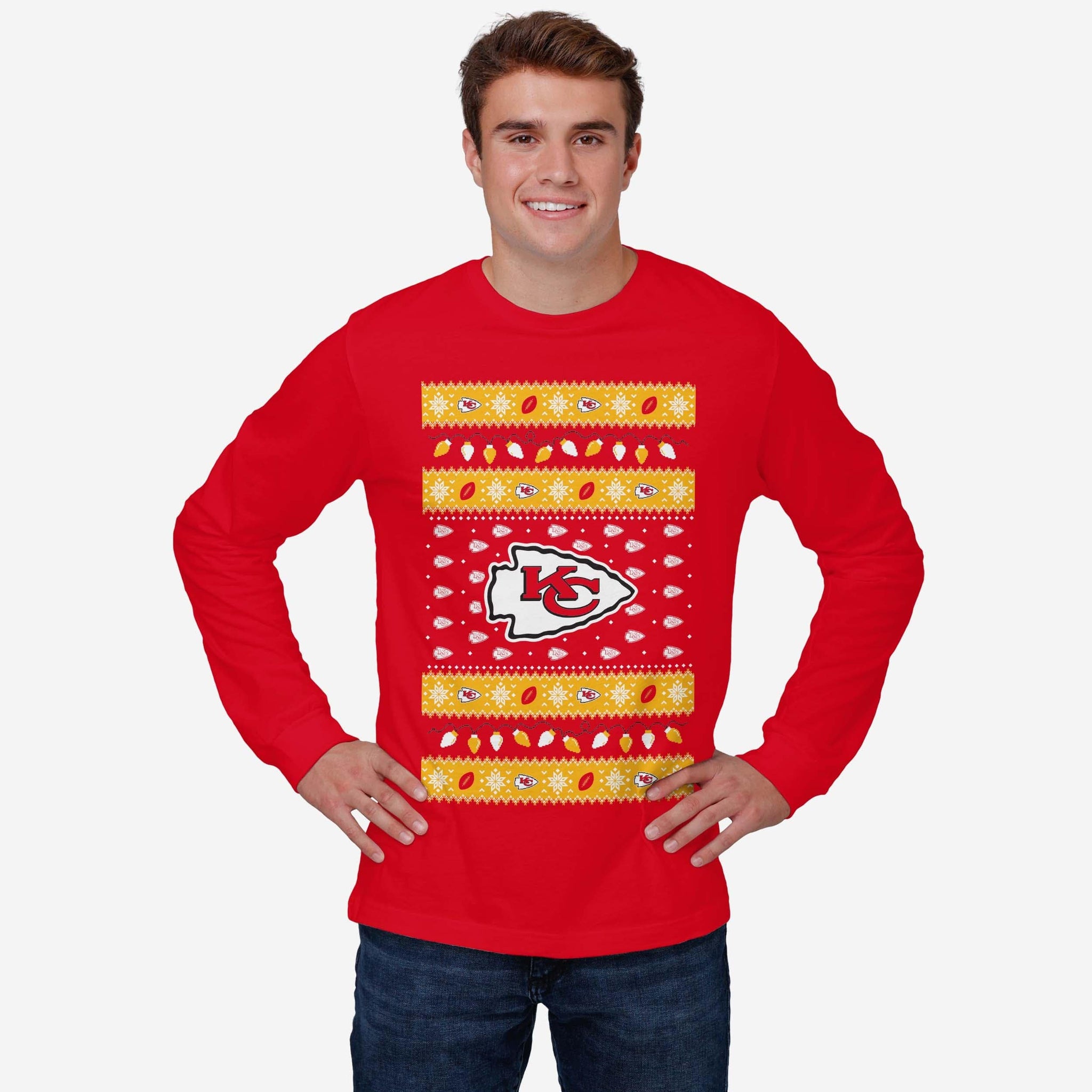 Santa's making a list, and he’s checking it twice! Prove that you’re the nicest fan around with the Kansas City Chiefs Holiday Lights Sweater Long Sleeve T-Shirt.