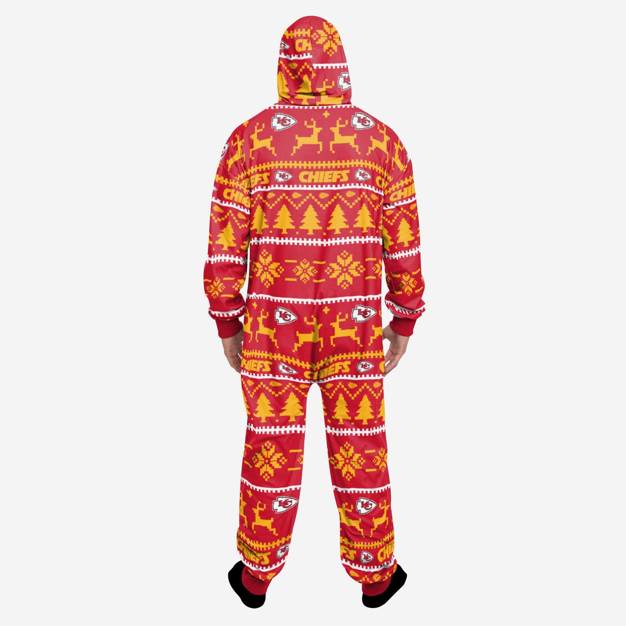 Your new gameday attire has arrived. Whether you're in the stadium, at the tailgate, or just hanging out at home, you're gonna love watching the game in these Kansas City Chiefs Holiday Onesie Pajamas.