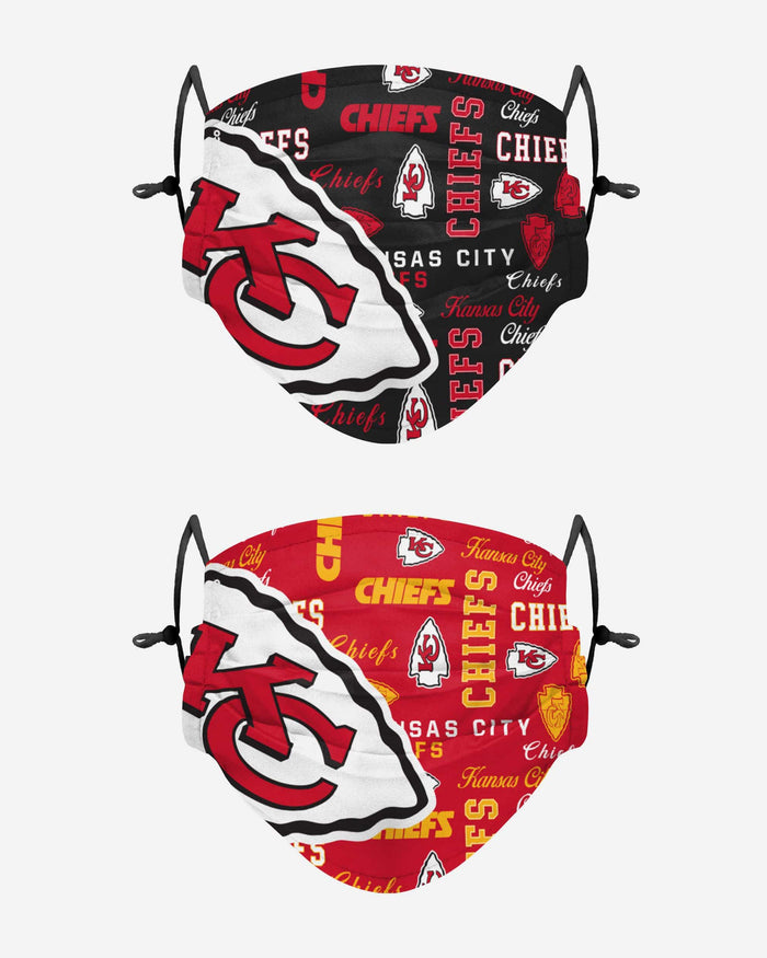 Cover up while you represent your favorite team in this Kansas City Chiefs Logo Rush Adjustable 2 Pack face covering!