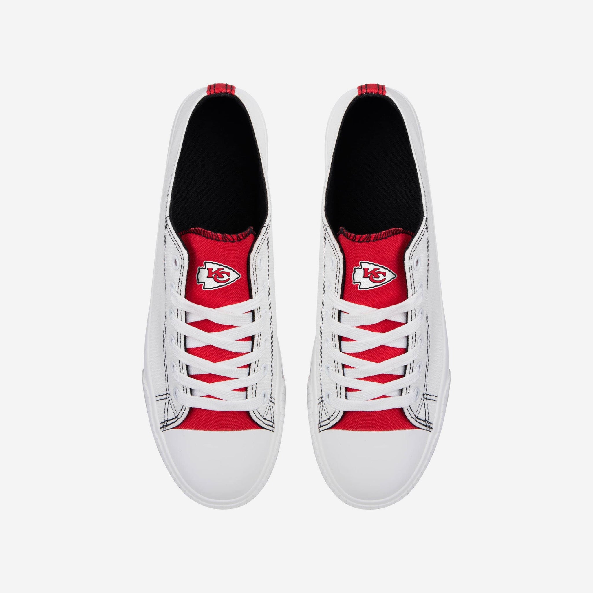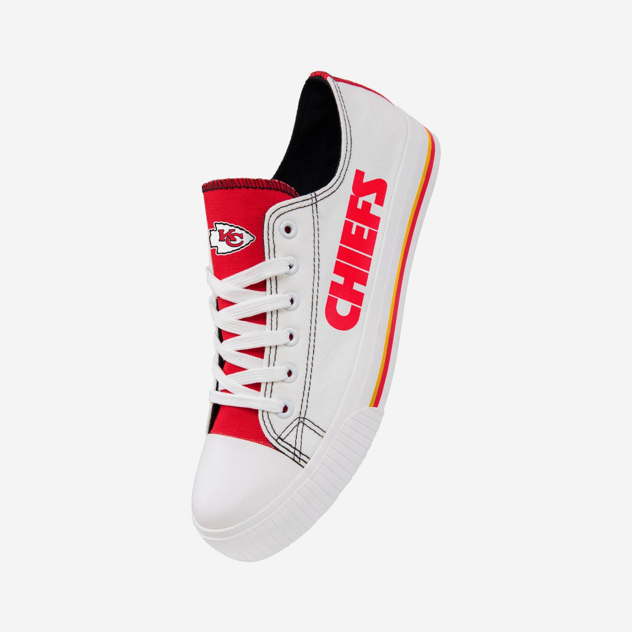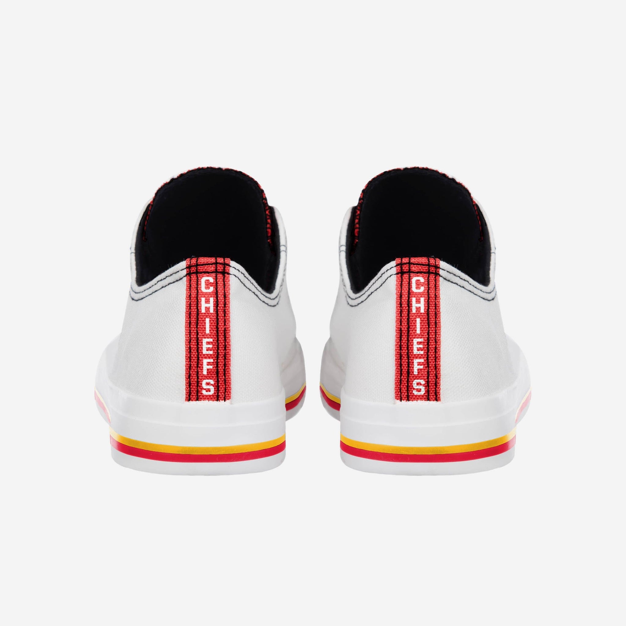 Low top shoes. High level fandom. Take countless steps in the right direction with these Kansas City Chiefs Men's Low Top White Canvas Shoes.