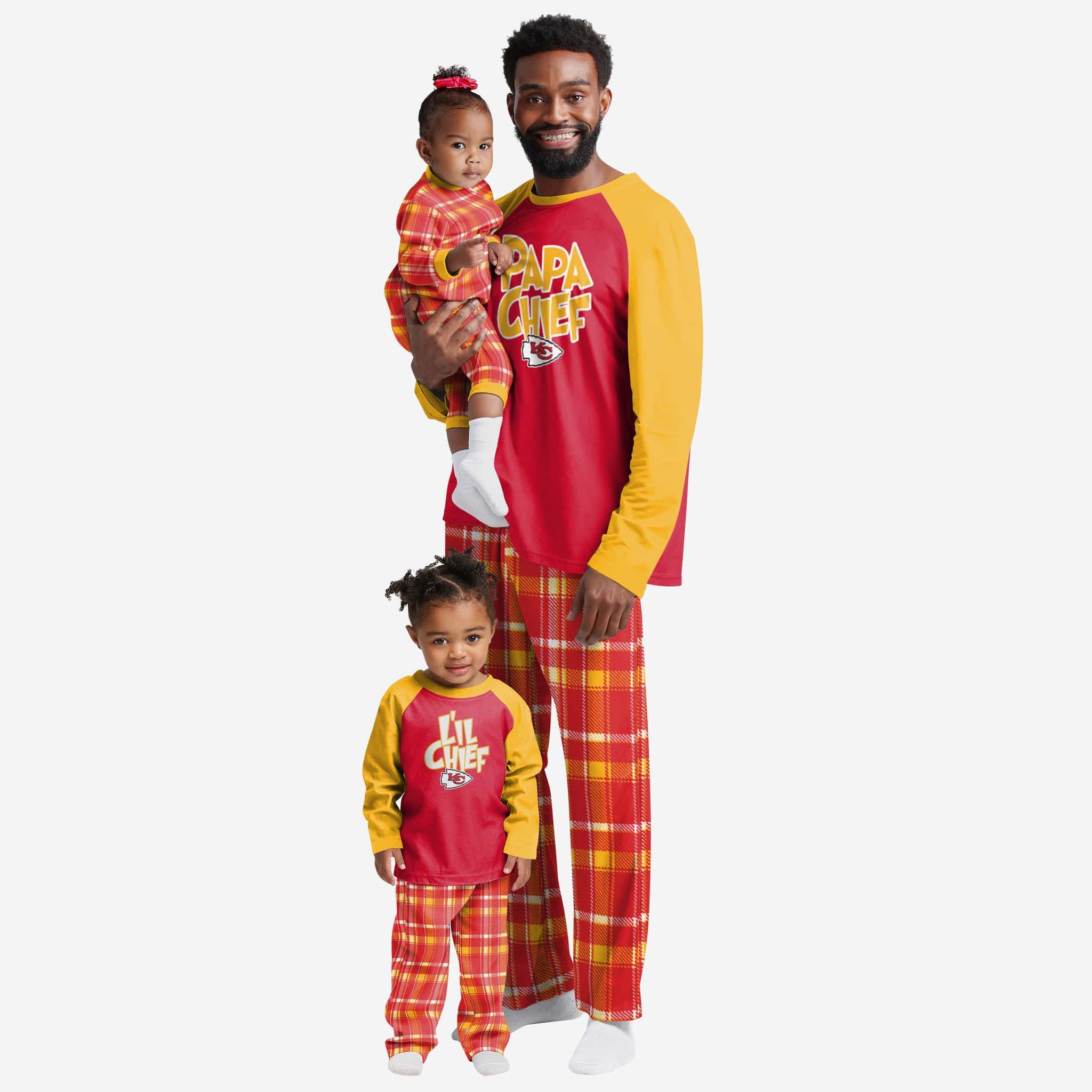 Get some matching family pajamas and dress to impress this holiday season! You won't want to miss these men's team pajamas! These men's PJ's are comfortable and show off your team spirit in the form of some sweet men's jammies. Introducing the Kansas City Chiefs Plaid Family Holiday Pajamas! Don't forget to take your holiday photo with the whole family wearing matching Christmas pajamas!
