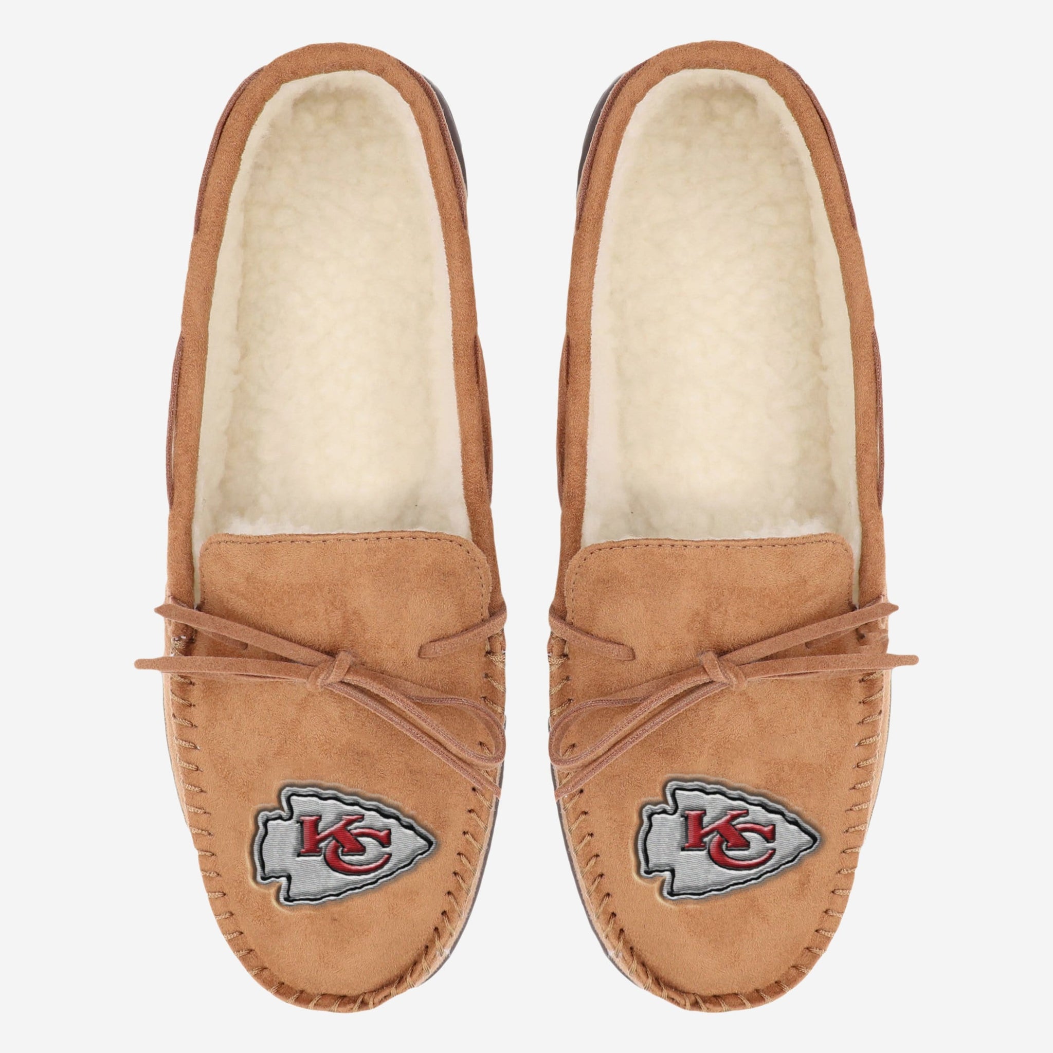 Moccasins? Cool. Comfy slippers? Also cool. Kansas City Chiefs Moccasin Slippers? Mind = blown. The future is now, friend.