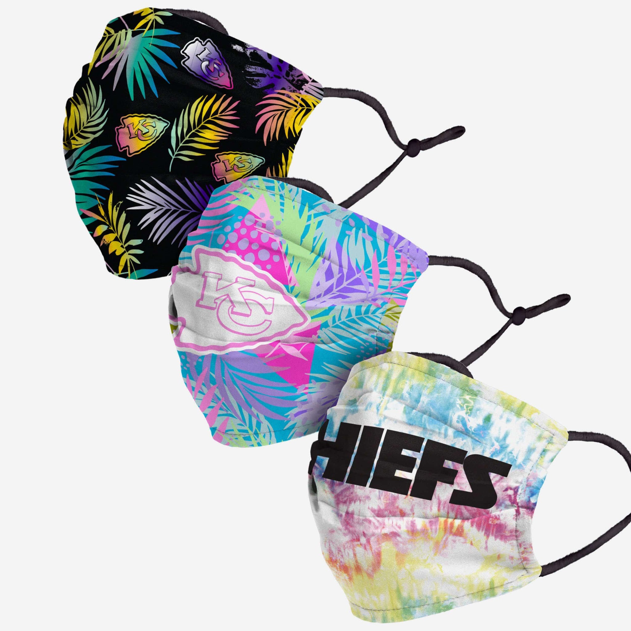 Cover up and rep your team on the go with this Kansas City Chiefs Neon Floral 3 Pack face covering!
