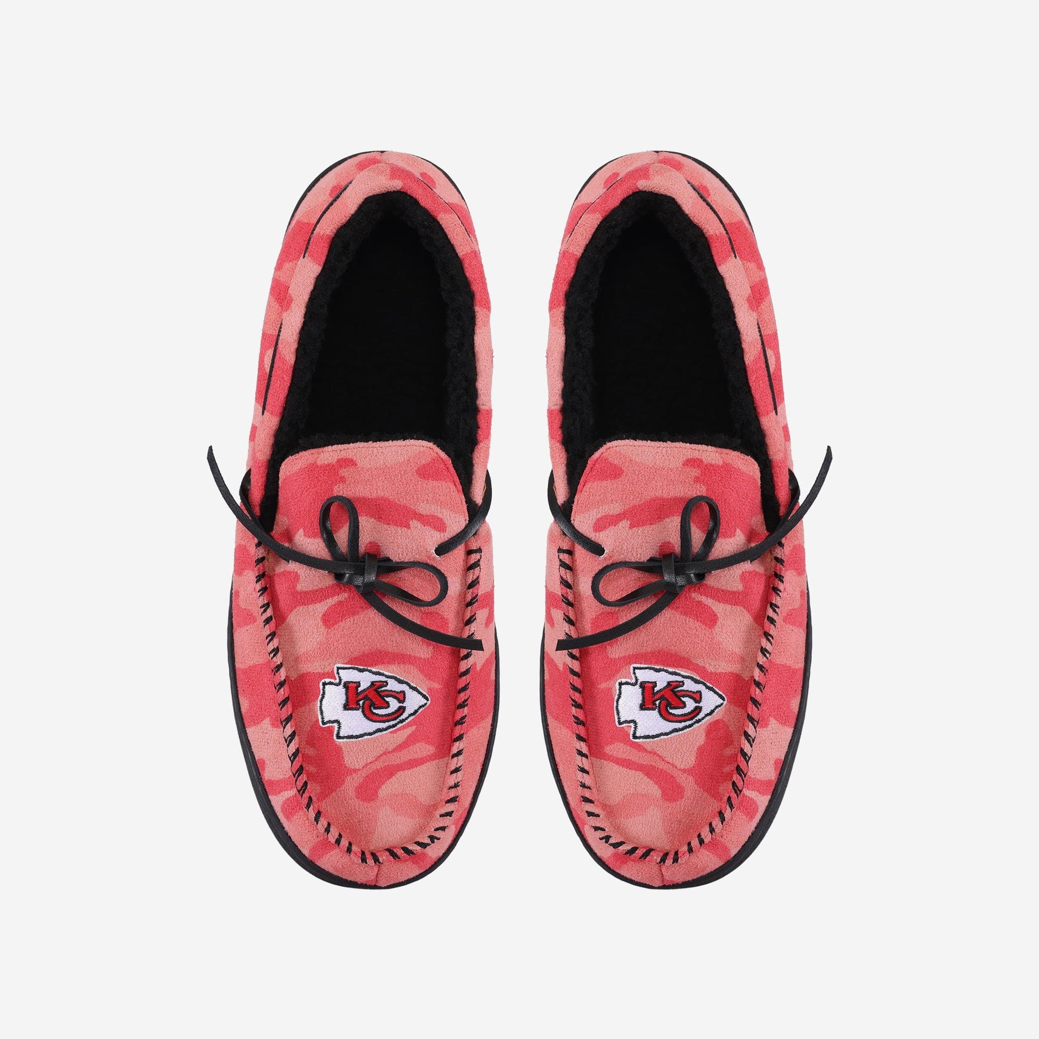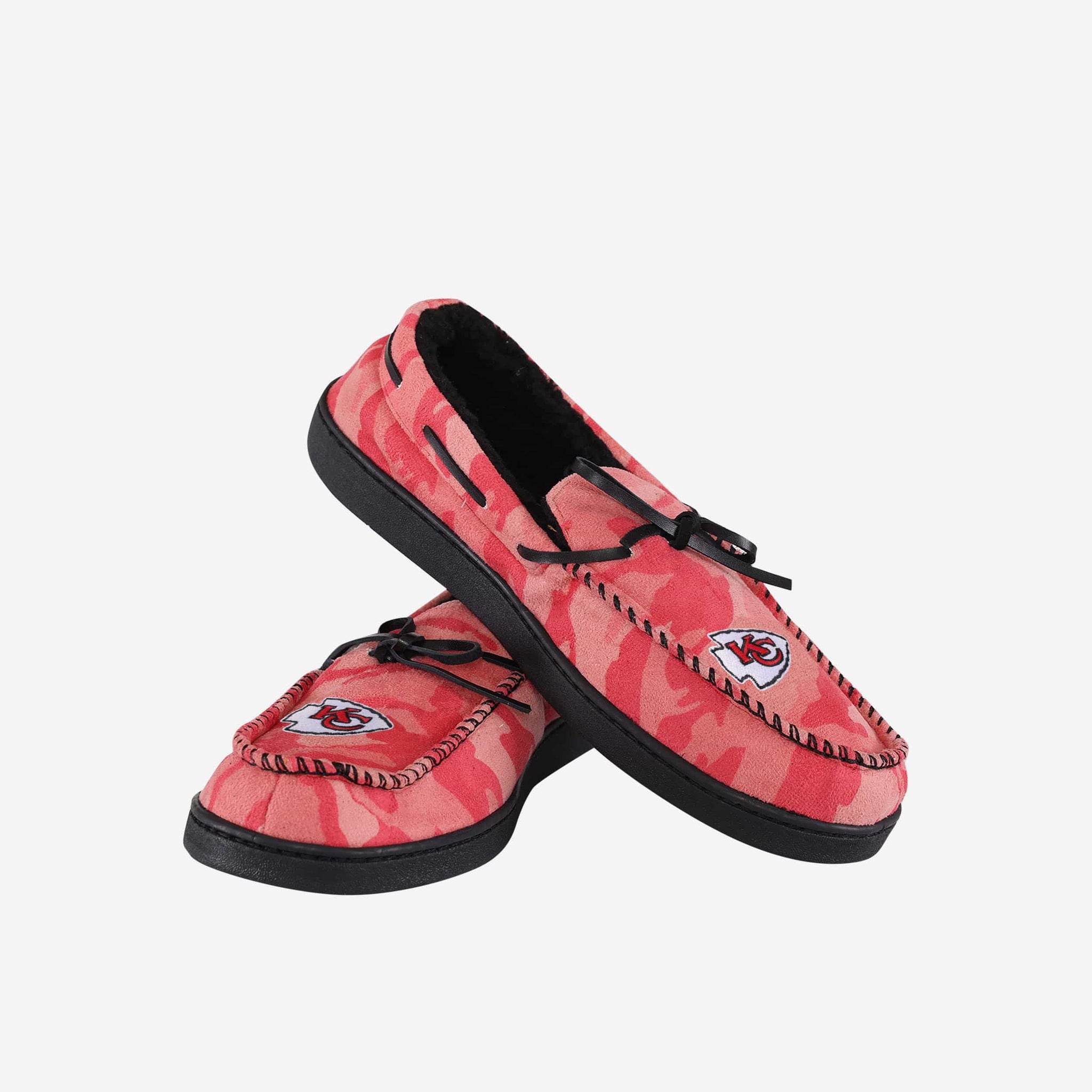 Despite their stylish camouflage design, there will be nothing discrete about your one-of-a-kind team spirit when you're rocking these Kansas City Chiefs Printed Camo Moccasins!