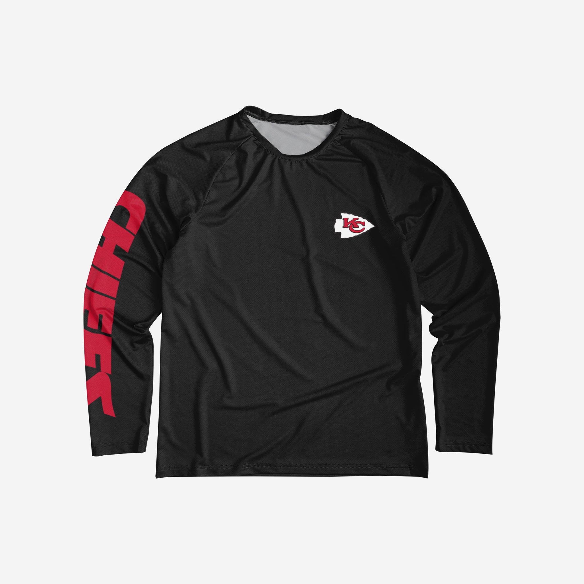 Summer style has never looked so good. Keep your cool and enjoy a day of fun, sun, sand, and surf in this Kansas City Chiefs Rash Guard Long Sleeve Swim Shirt!