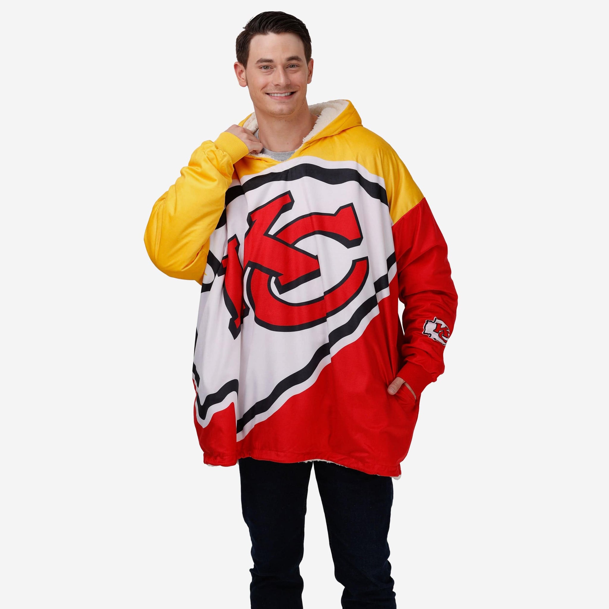 Never before has fandom looked so good and felt so relaxing. Lounge like a legend while you cheer your team on to victory by rocking this Kansas City Chiefs Reversible Colorblock Hoodeez.