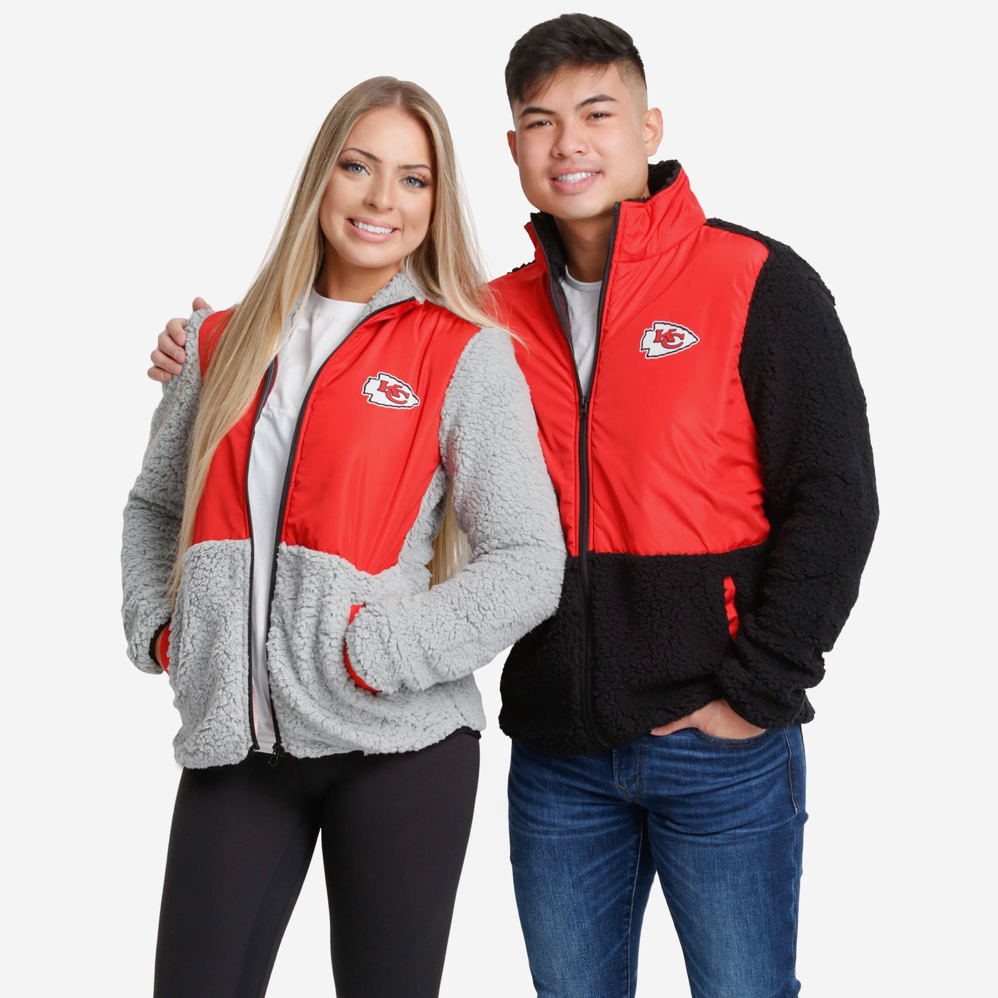Cold weather comfort and the freshest fan fashion, together in perfect harmony. Enjoy the best of both worlds with this Kansas City Chiefs Sherpa Soft Zip Up Jacket!
