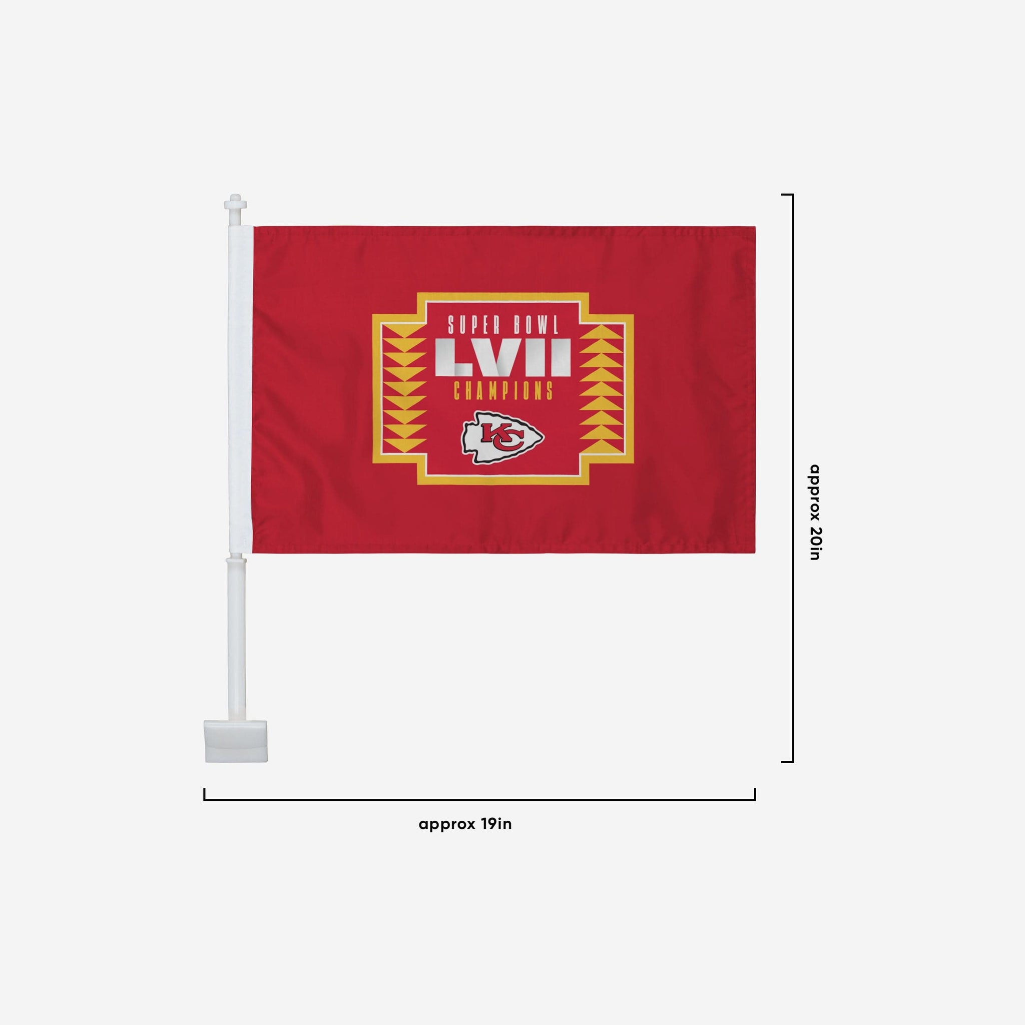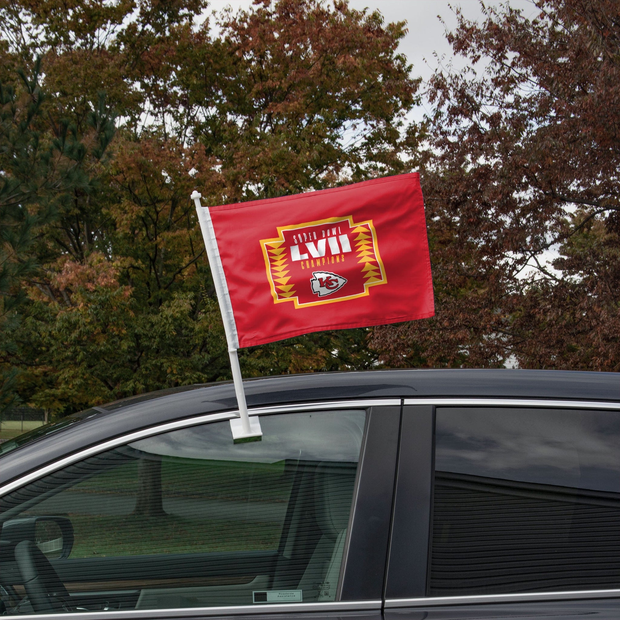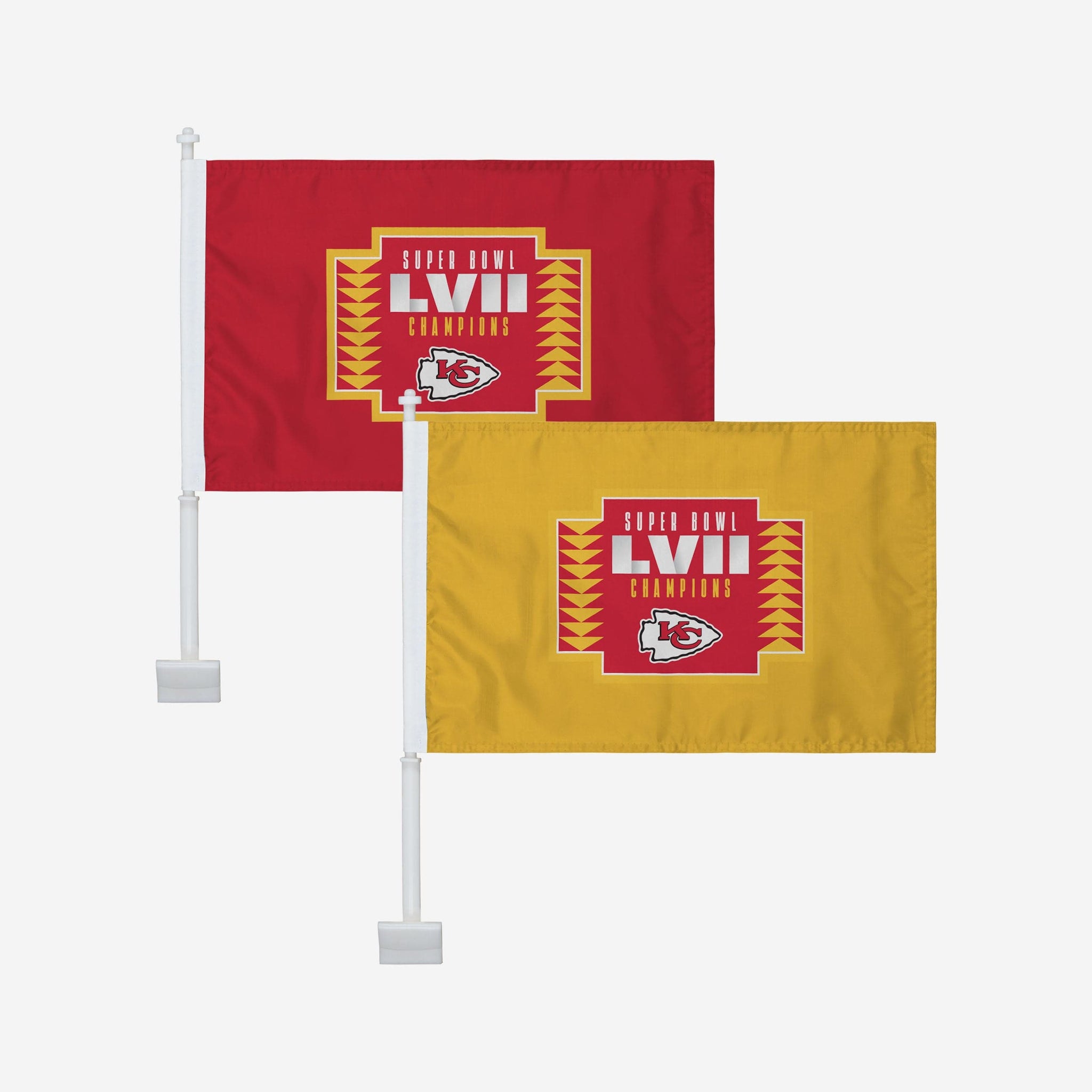 Hit the road with the help of your championship spirit! This Kansas City Chiefs Super Bowl LVII Champions 2 Pack Car Flag is sure to get your engines revving.