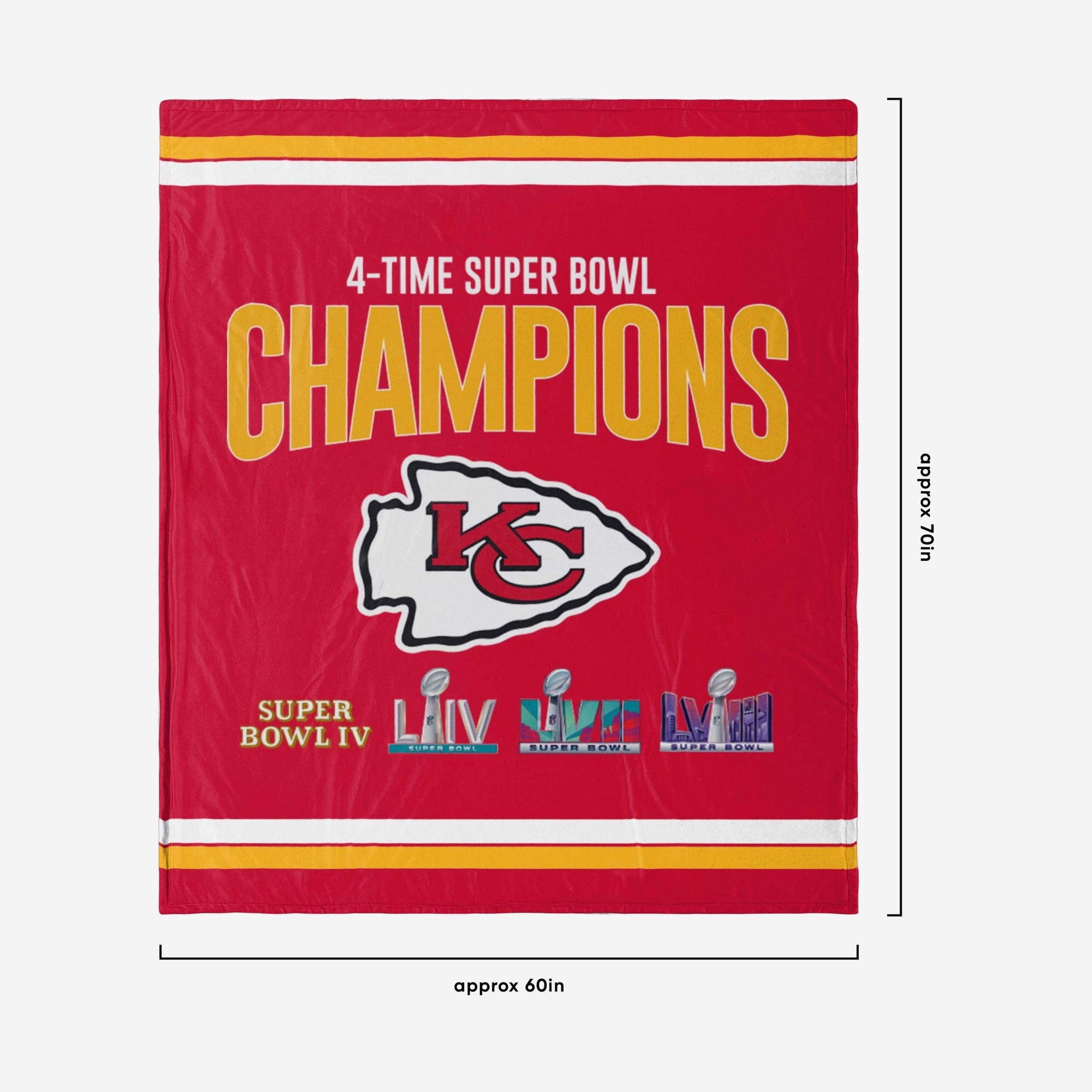 Now this is what we call championship-caliber blanket coverage. Rest up after the big win under this Kansas City Chiefs Super Bowl LVIII Champions Multi-Champ Champions Sherpa Blanket!