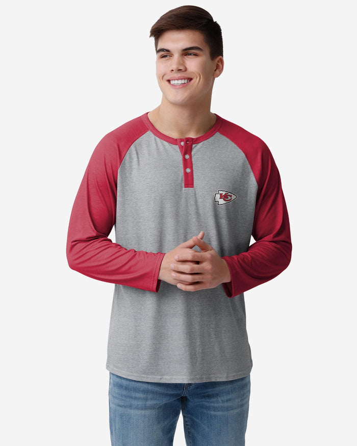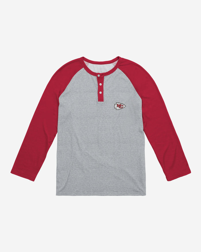 Even on the sunniest of days, there's nothing wrong with a little gray. Win the day in style with this Kansas City Chiefs Team Logo Gray Long Sleeve Henley.