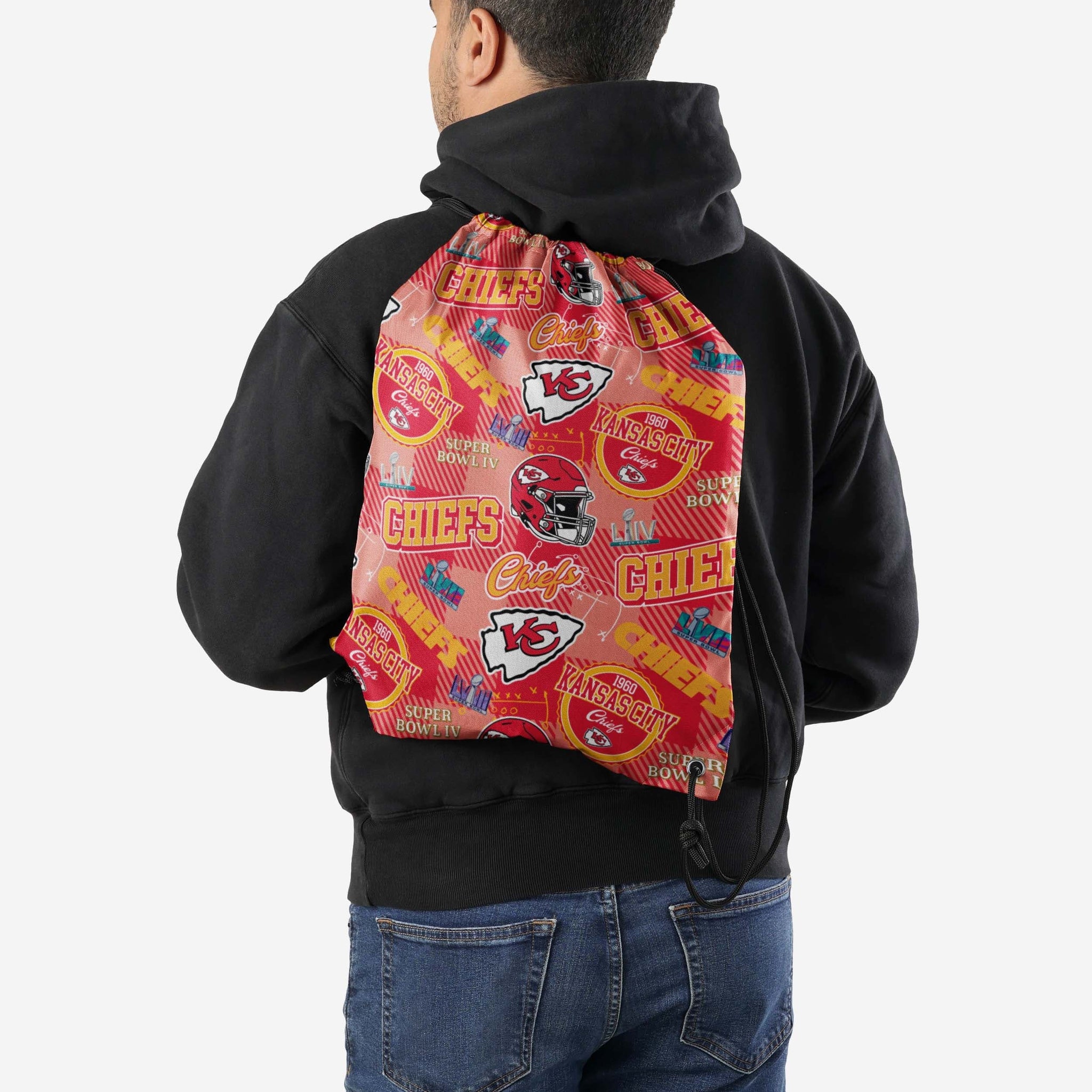 Step one: Pack up all your team spirit. Step two: Take it on the go. Step three: Repeat the first two steps for any adventure you go on with this Kansas City Chiefs Thematic Repeat Print Drawstring Backpack.