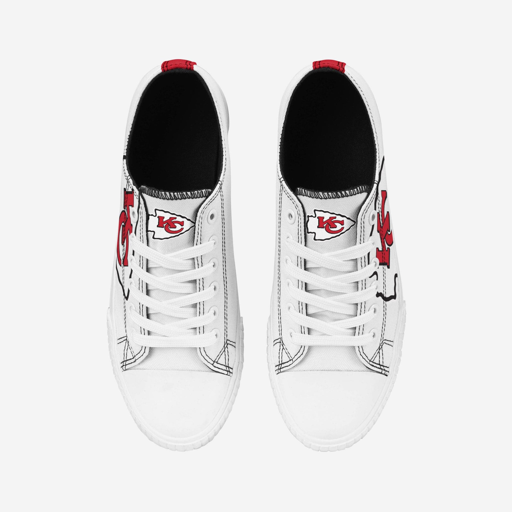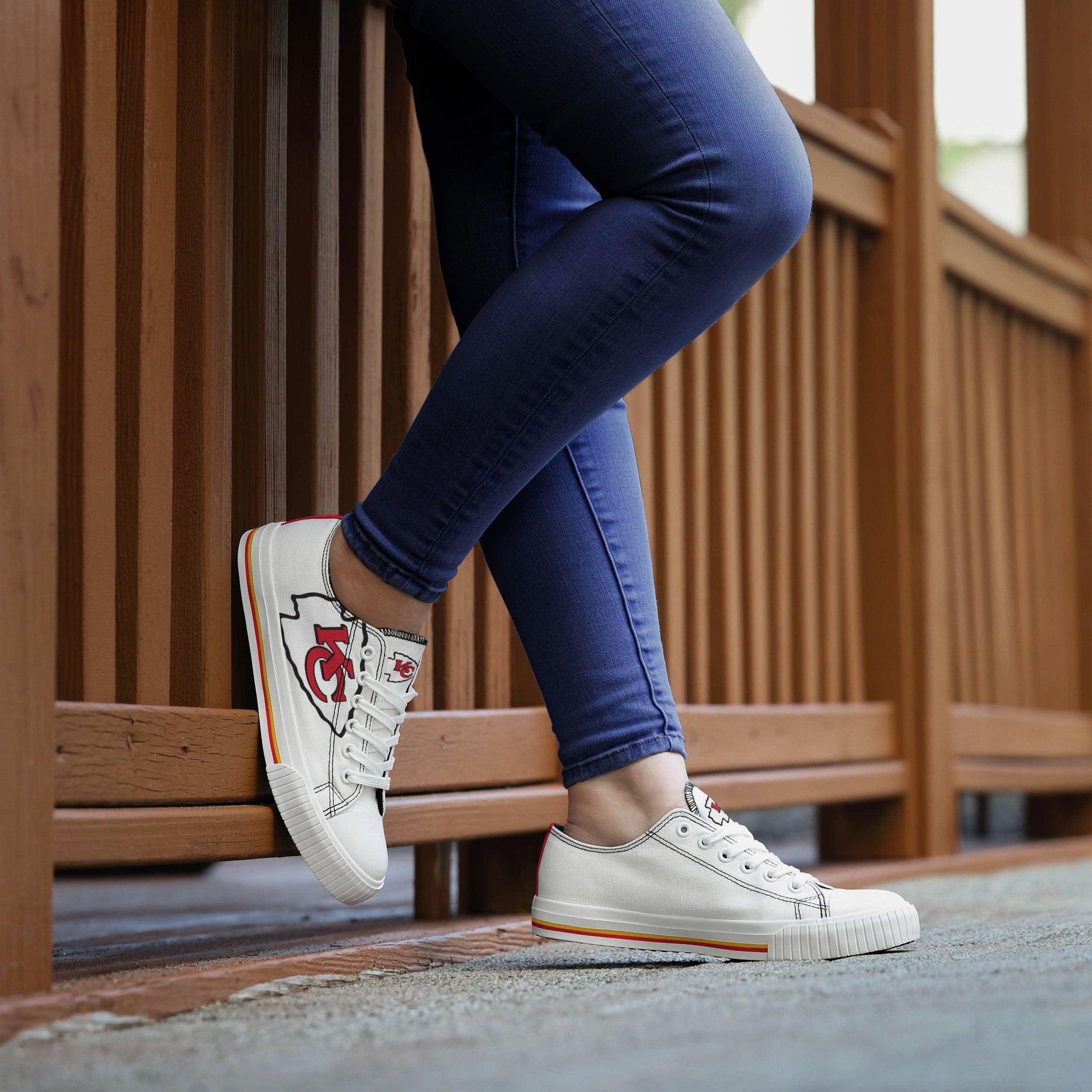 Low tops. High spirits. No matter the final score, you'll always be winning with the Kansas City Chiefs Women's Big Logo Low Top White Canvas Shoes on your feet.