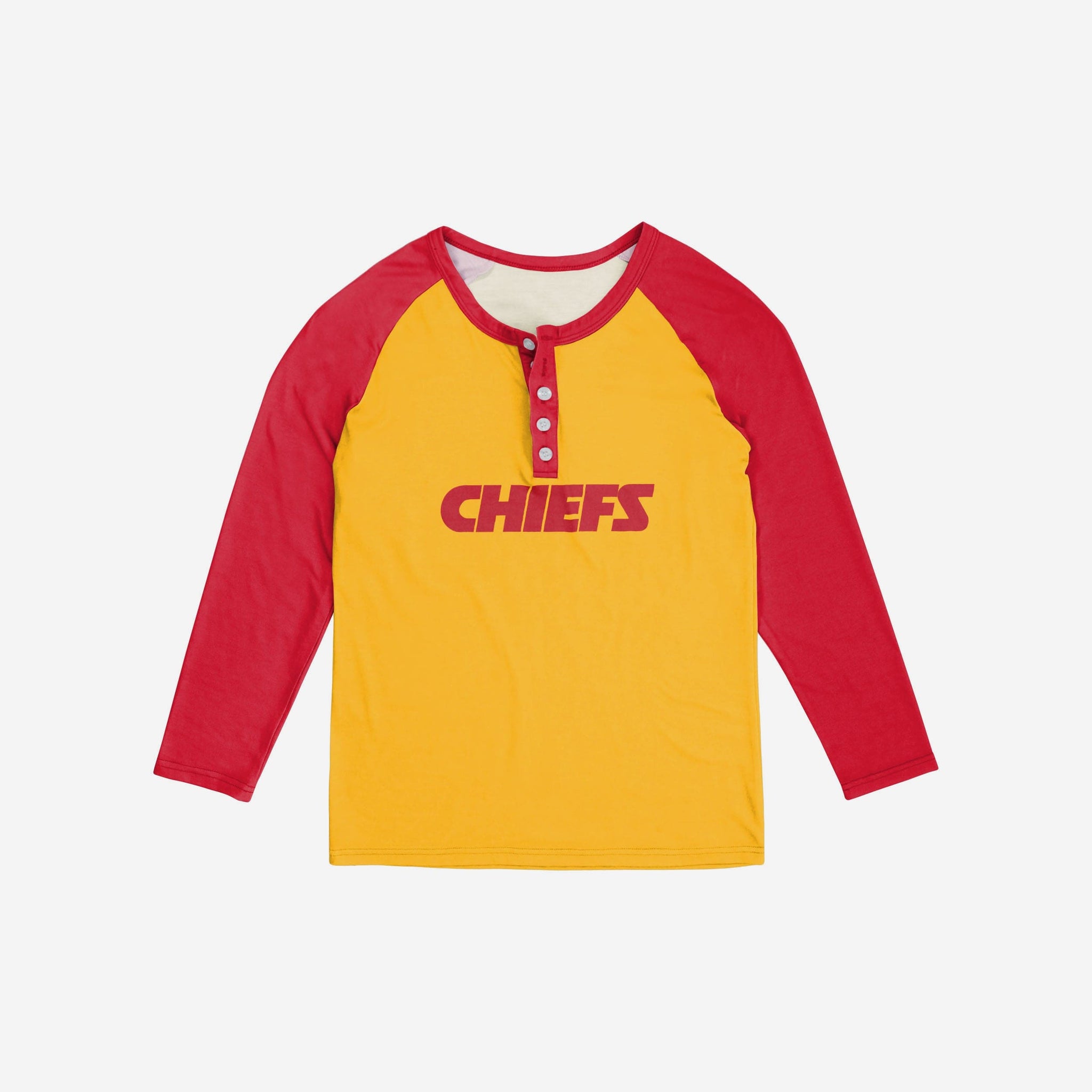 Spread the word(mark)! Dress to impress and let your team spirit speak for itself by rocking this Kansas City Chiefs Women's Big Wordmark Long Sleeve Henley.