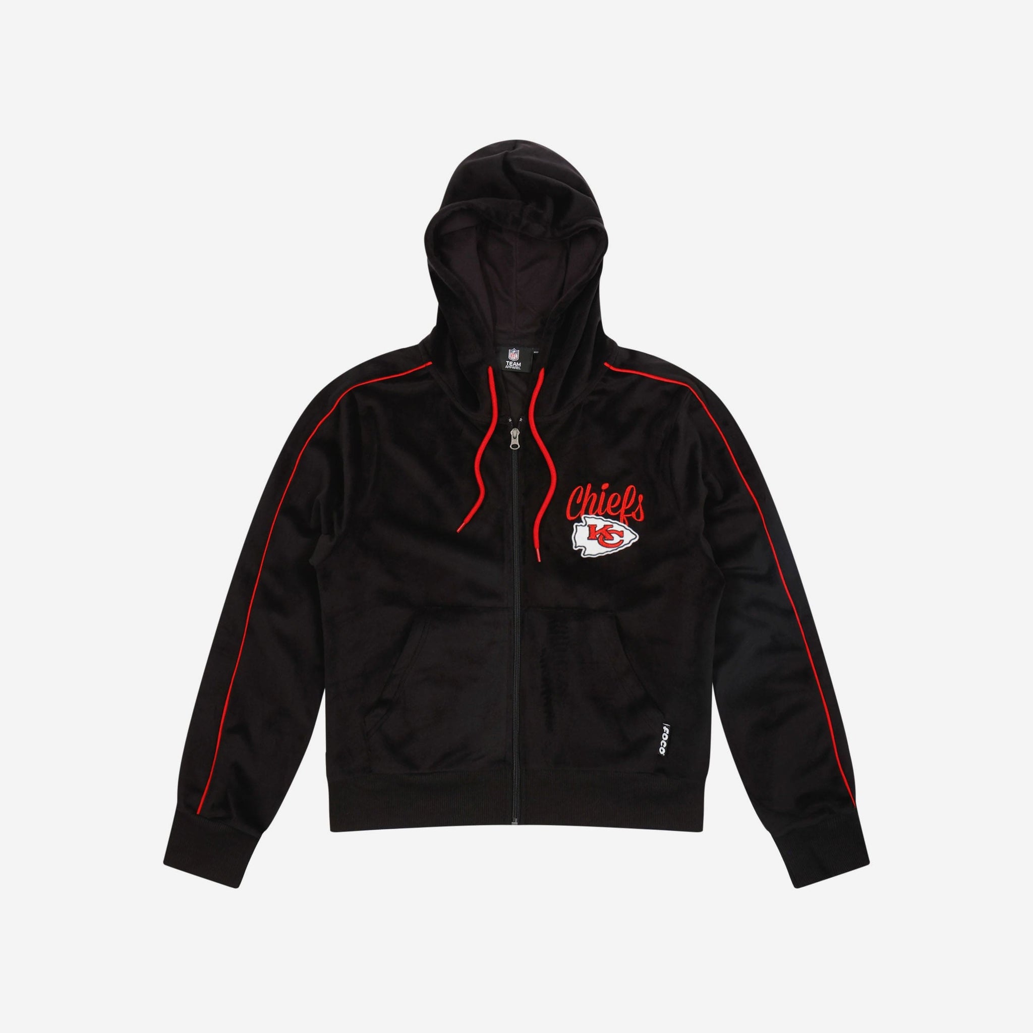 Zip up and bring fandom and fashion together in perfect harmony. This Kansas City Chiefs Black Women's Velour Zip Up Top is about to be your new favorite fashion teammate.