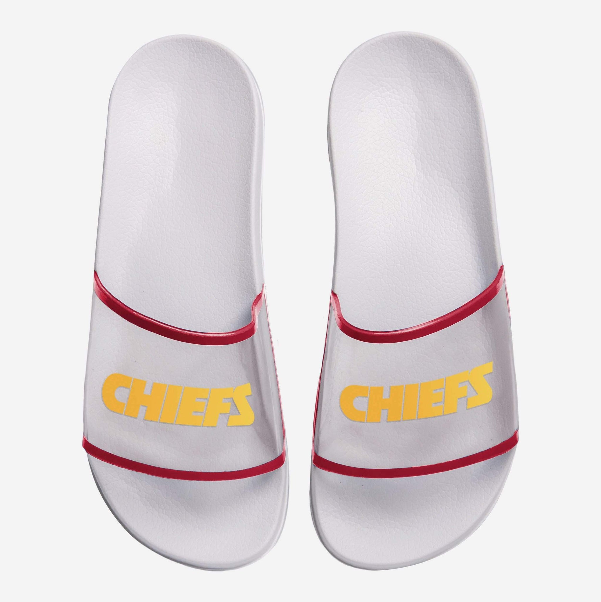 So, you're trying to find the best way to show off your team spirit, and look good while you do it. The answer is clear. Like, literally. As in, these Kansas City Chiefs Clear Wordmark Slide Flip Flops.