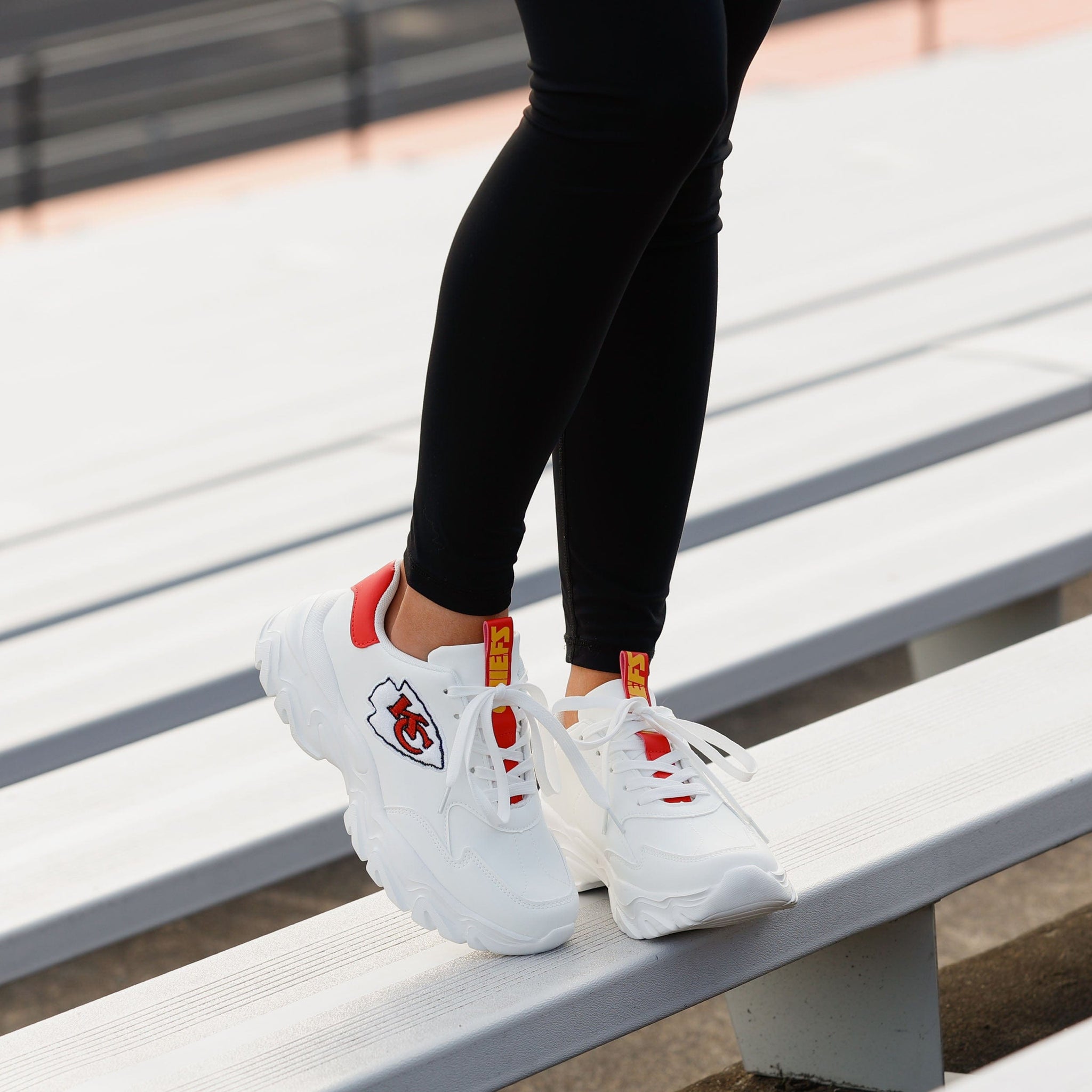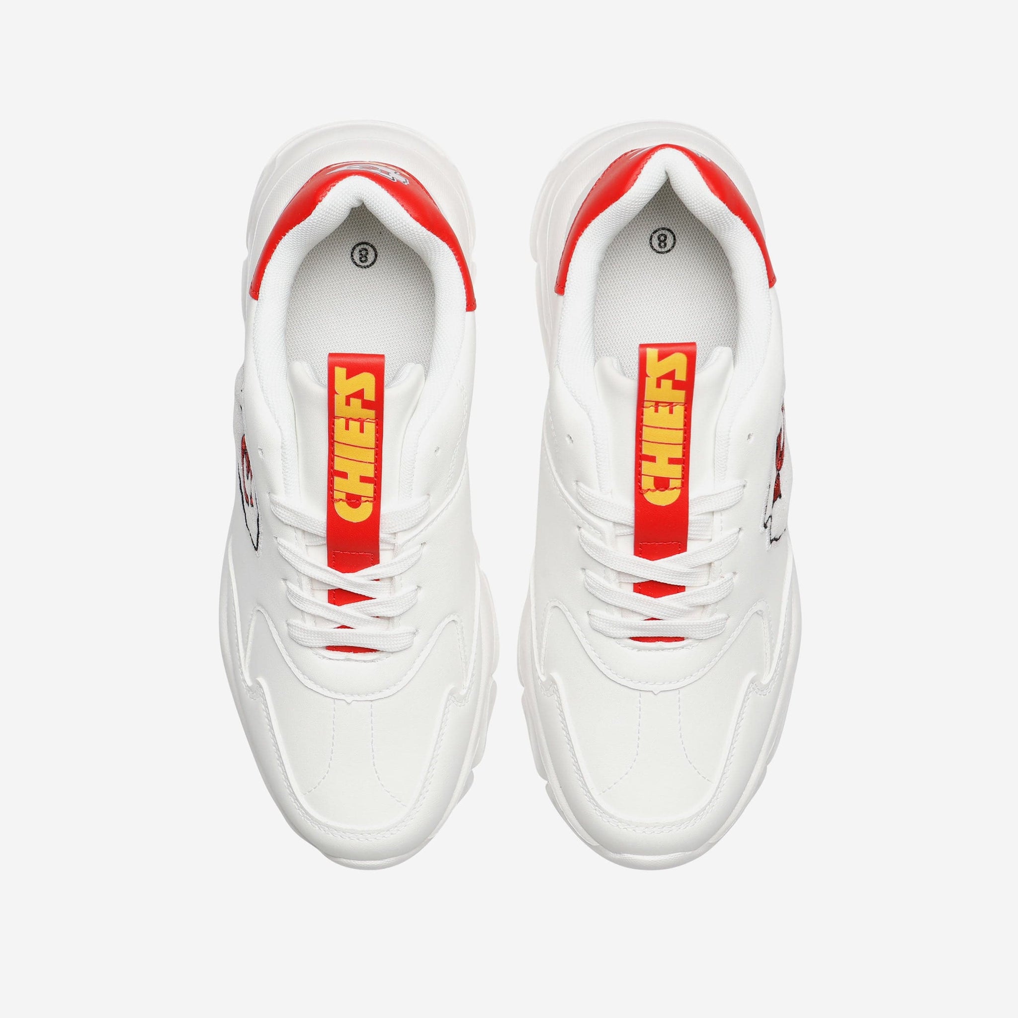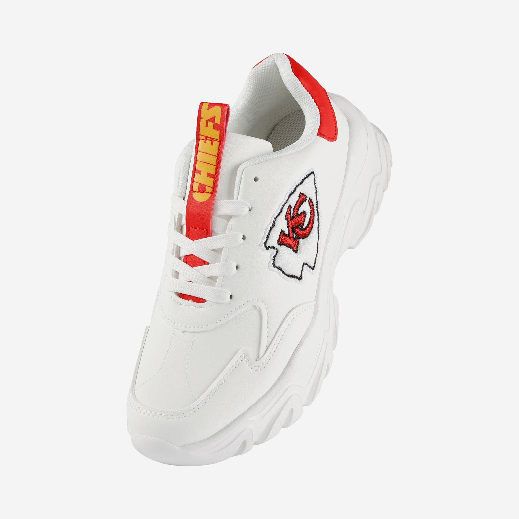 Looking for a way to step up your fan fashion game? You’ve found it! Put some team spirit in your stride with the Kansas City Chiefs Vintage White Chunky Sneakers.