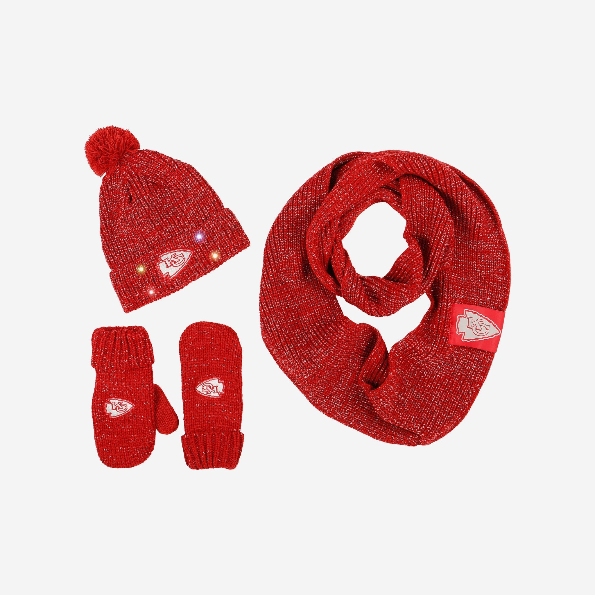 Brrrr. It gets chilly on those winter gamedays. But you'll stay oh, so toasty thanks to the supa hot fire styles of this Kansas City Chiefs Women's Glitter Knit Cold Weather Set!