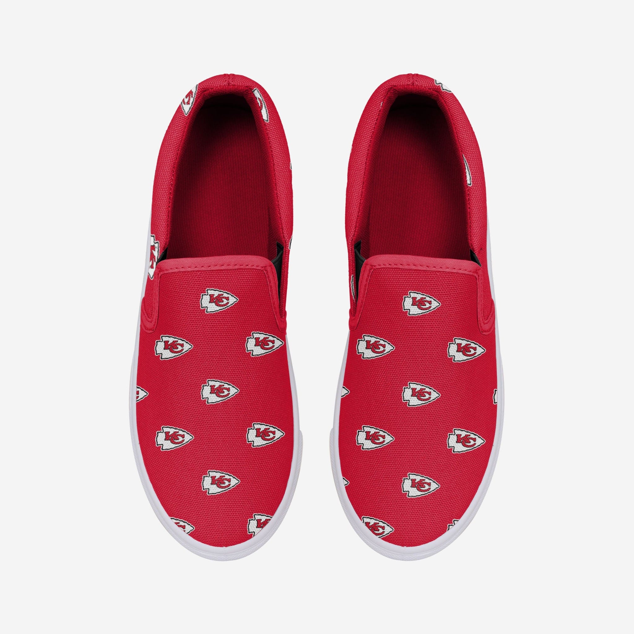With all this team spirit on display, no words are necessary. But we'll use a few anyway. Make a stylish statement when you step out in these Kansas City Chiefs Women's Repeat Logo Slip-On Canvas Shoes!