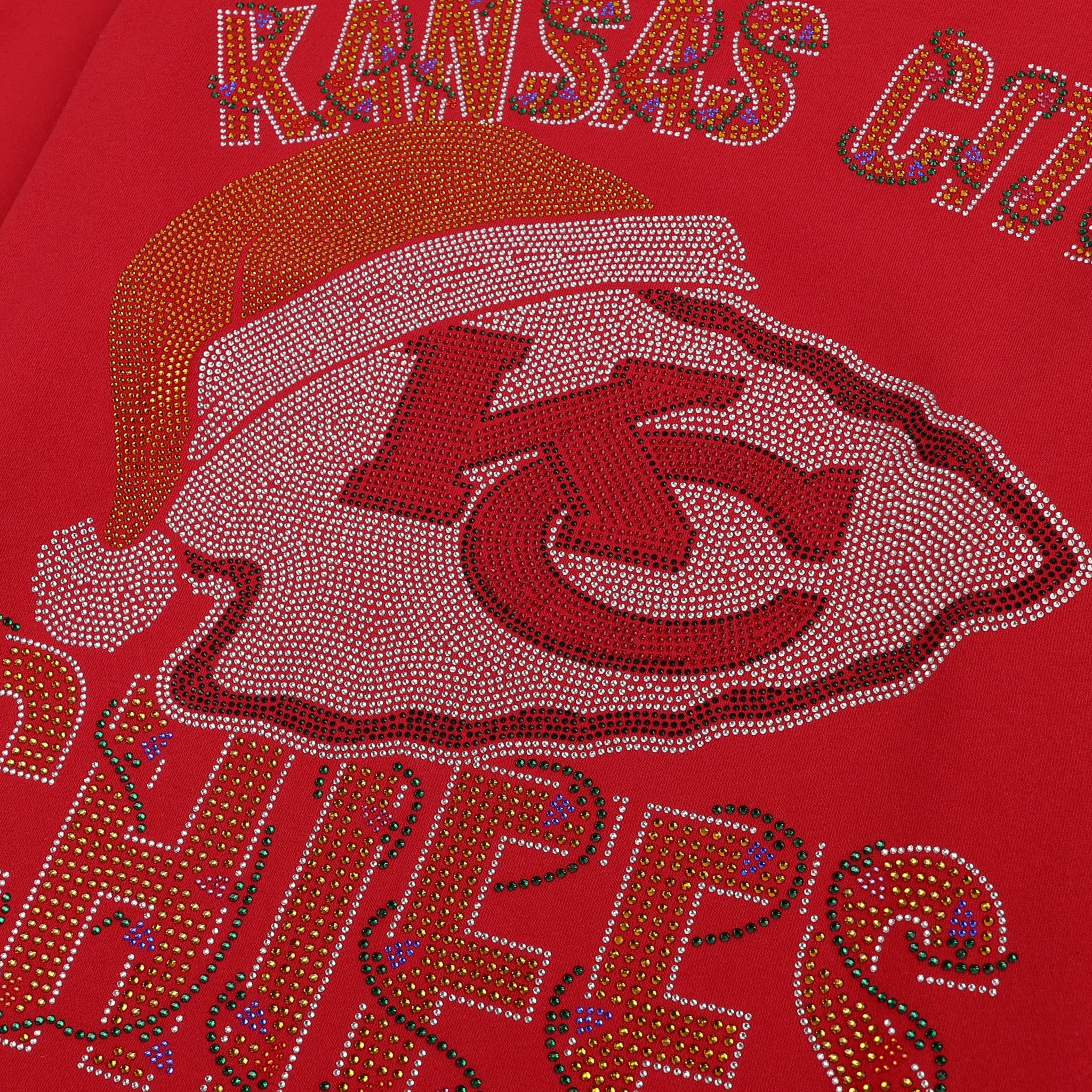 Santa's making a list, and he’s checking it twice! Bling it on! It's time to turn up the twinkle and let your fan fit do the talking. This Kansas City Chiefs Womens Rhinestone Logo Oversized Holiday Crew Neck Sweatshirt is made for those who like their cozy with a little extra shine. From game day to every day, it’s the perfect way to stay warm and wow-worthy during the holiday season.