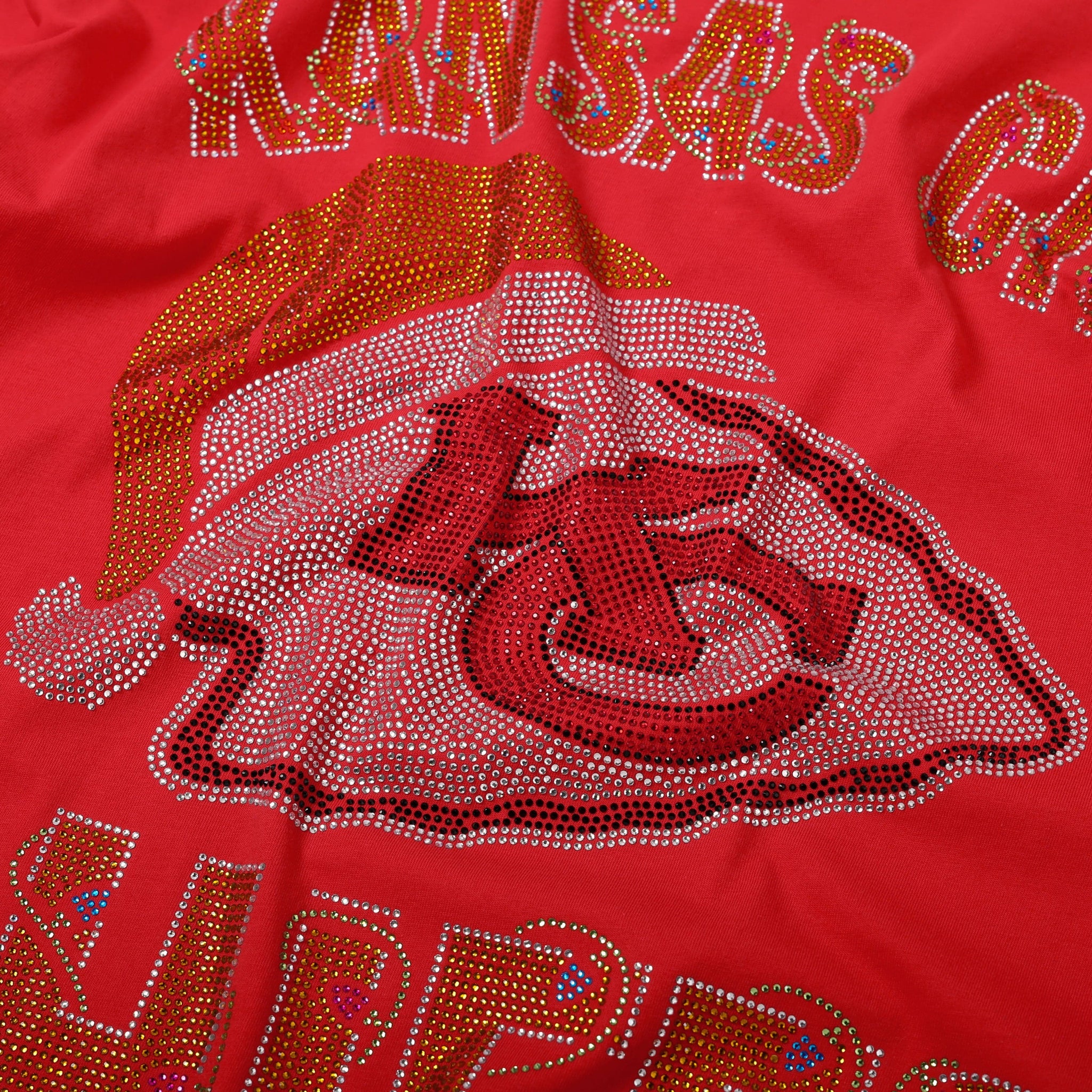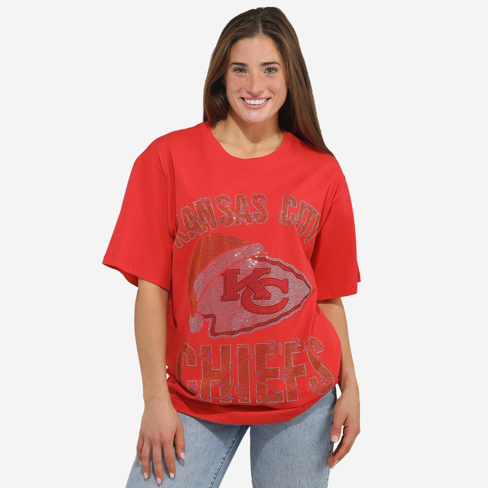 Santa's making a list, and he’s checking it twice! Bling it on! It's time to turn up the twinkle and let your fan fit do the talking. The Kansas City Chiefs Womens Rhinestone Logo T-Shirt is all about big sparkle and even bigger team spirit. It’s bold, it’s bright, and it’s ready to rep your squad from game day to every day this holiday season.