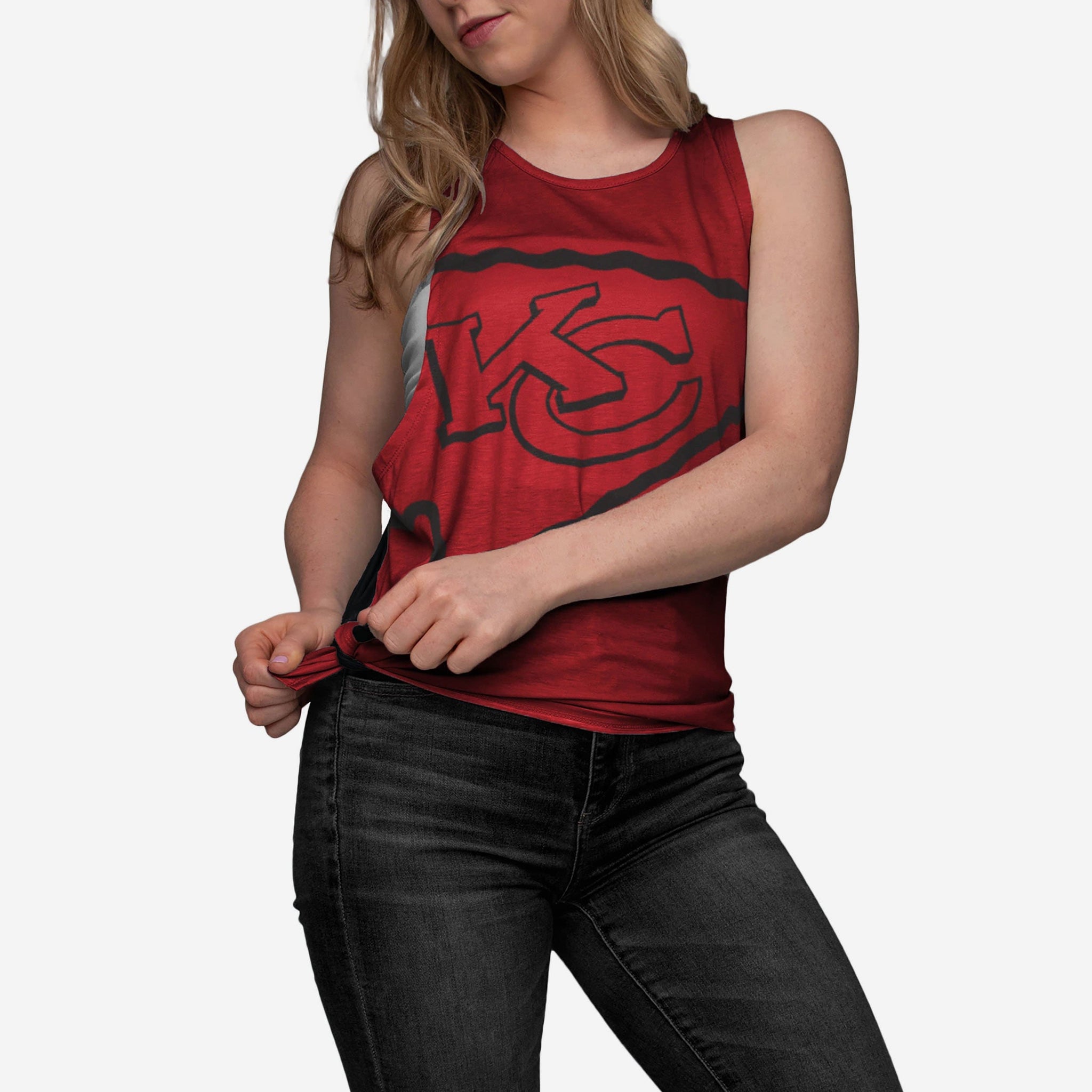 Bold fans like you need to boldly show off your fandom. That's where this Kansas City Chiefs Women's Side-Tie Sleeveless Top comes in. It has your team colors on display on the front and the back, because two ways to show off your team spirit are better than one.