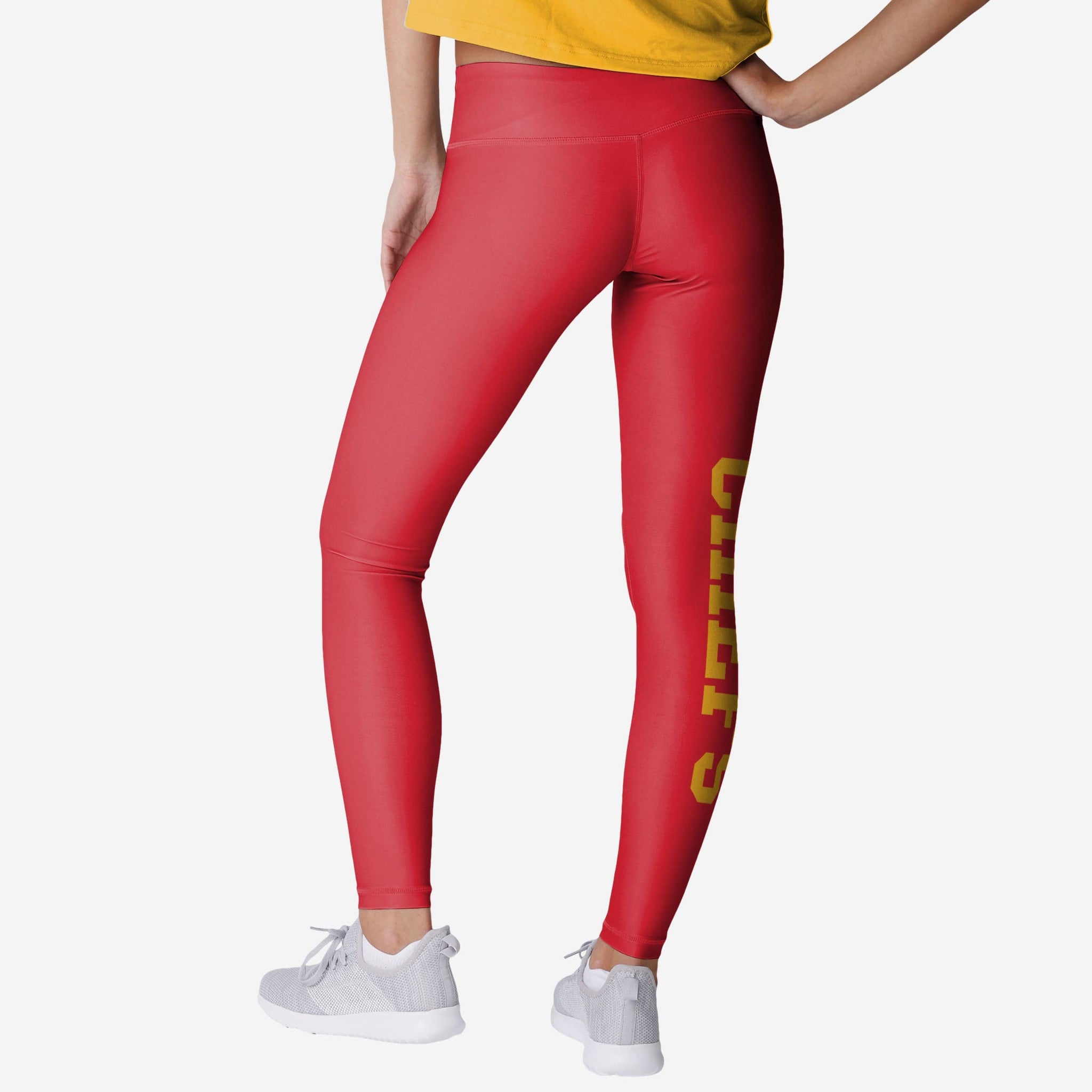 Your team pride isn't just great - It's leg-endary! Prove it by standing out on gameday and every day in these Kansas City Chiefs Women's Solid Big Wordmark Leggings.