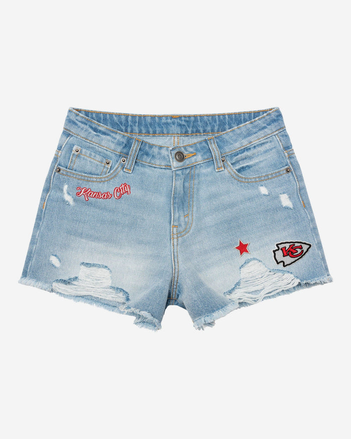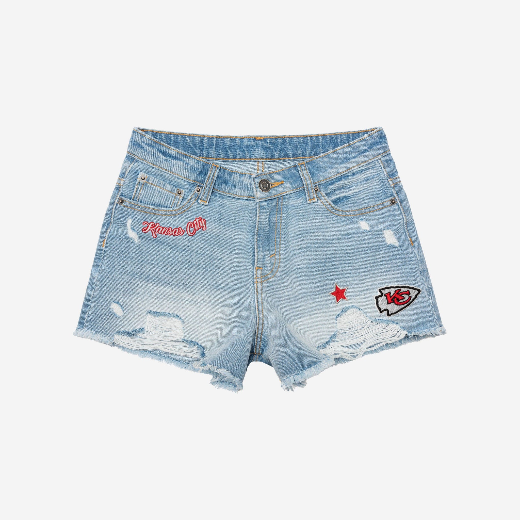 Just because the temperature outside is rising doesn't mean you should stop bringing the heat. Dress to impress at every game, tailgate, concert, barbecue, or wherever your fandom takes you with these Kansas City Chiefs Women's Team Logo Denim Shorts.