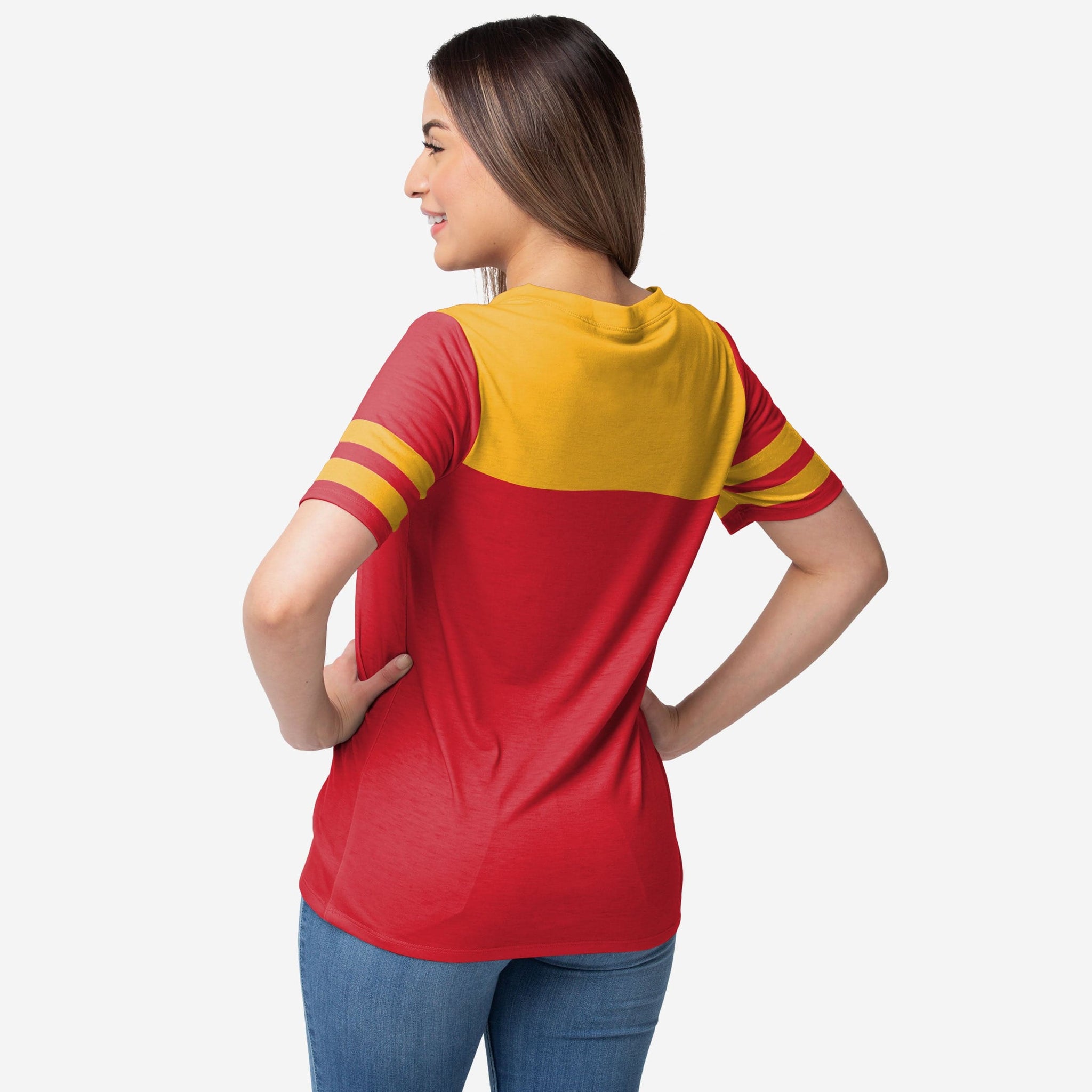 Ready. Set. Gameday! Dress to impress when you're chilling at the tailgate or cheering in the stadium with this Kansas City Chiefs Women's Team Stripe Property Of V-Neck Shirt.