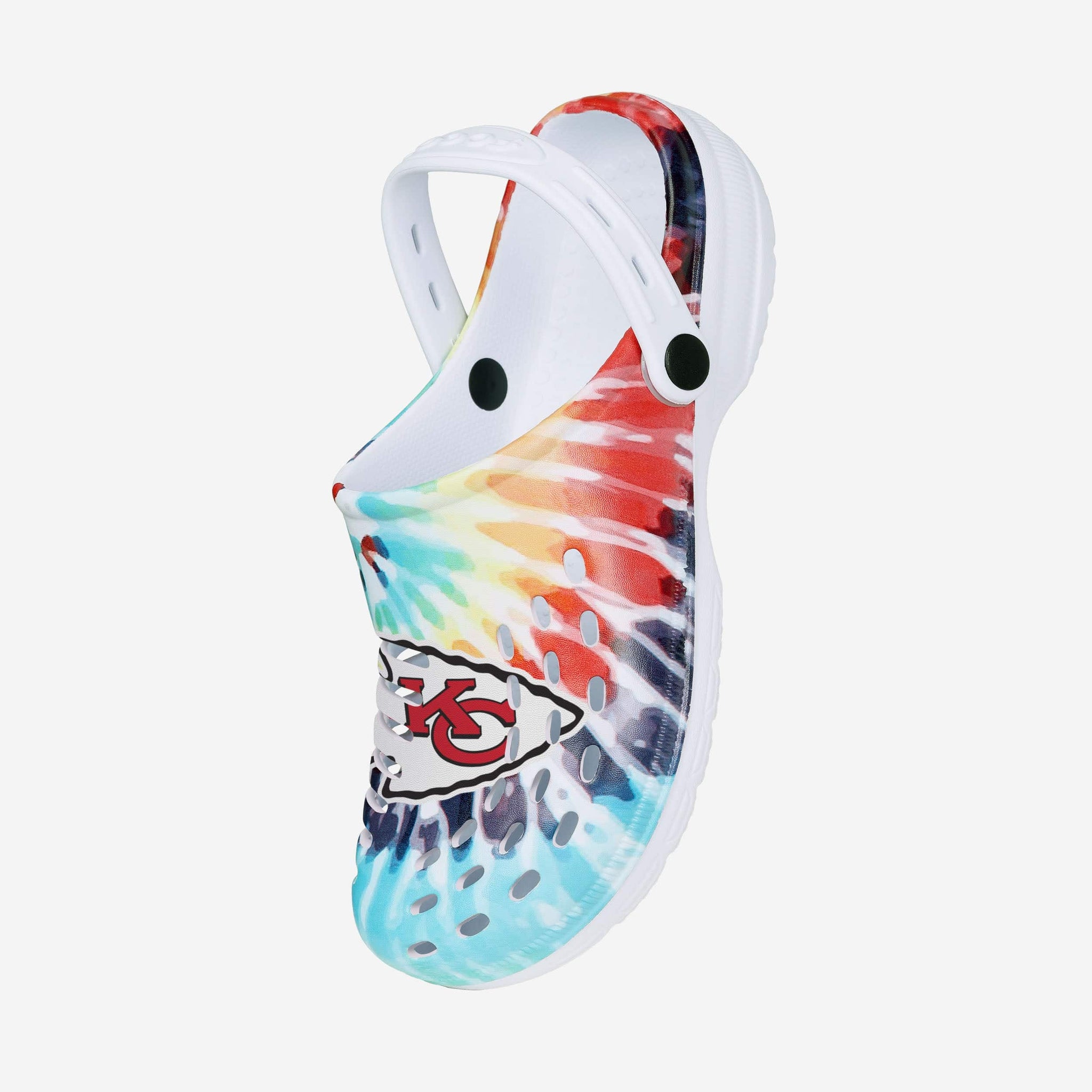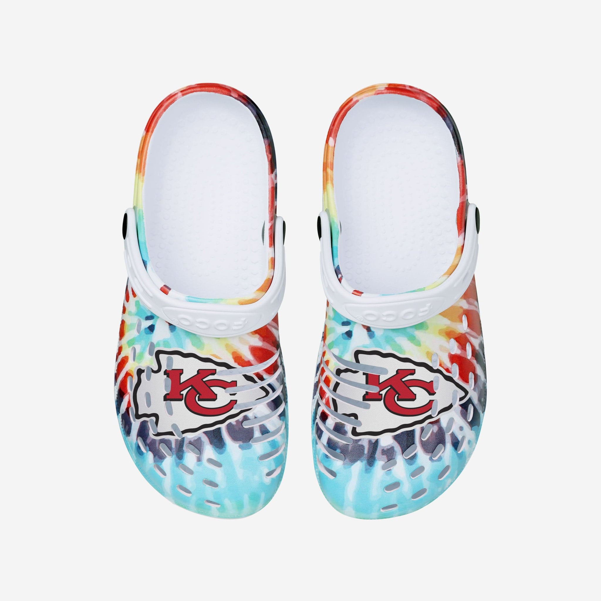 Peace. Love. Tie-dye. Step back in time with some style from yesteryear by rocking these Kansas City Chiefs Women's Tie-Dye Clogs with Straps.