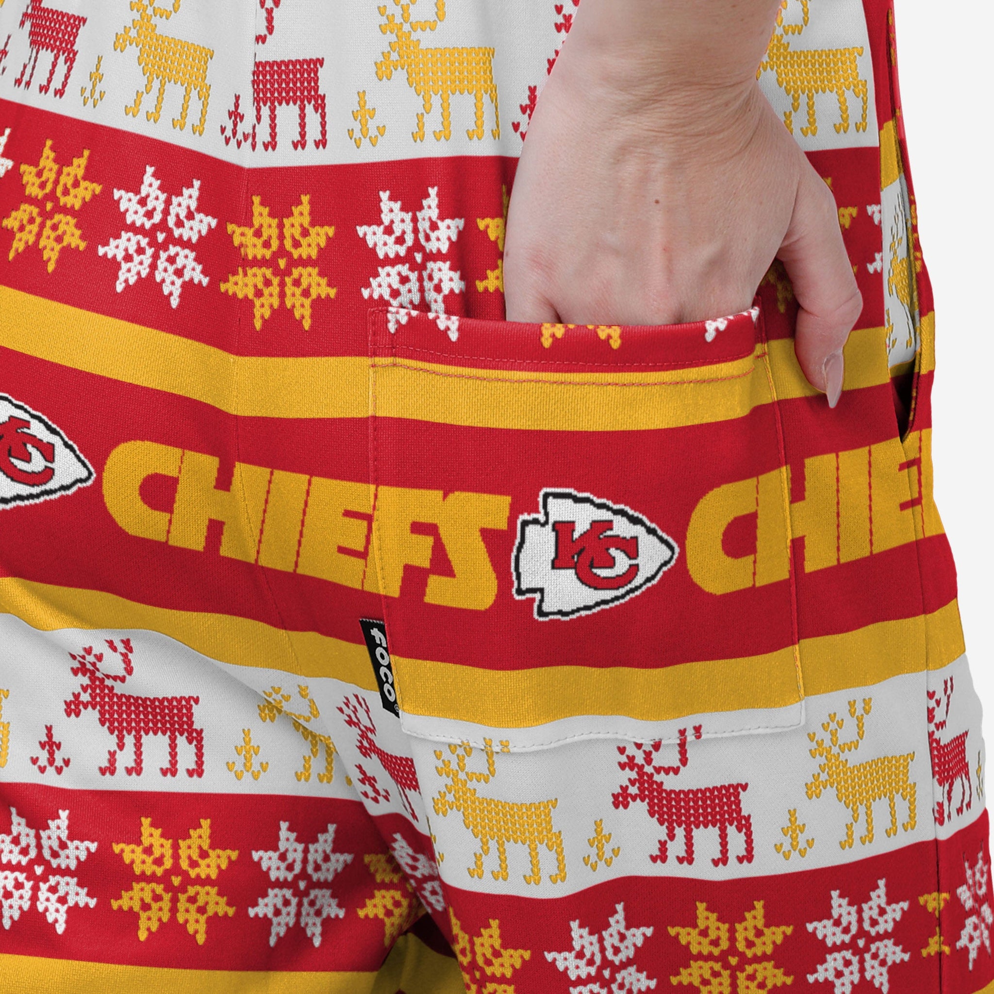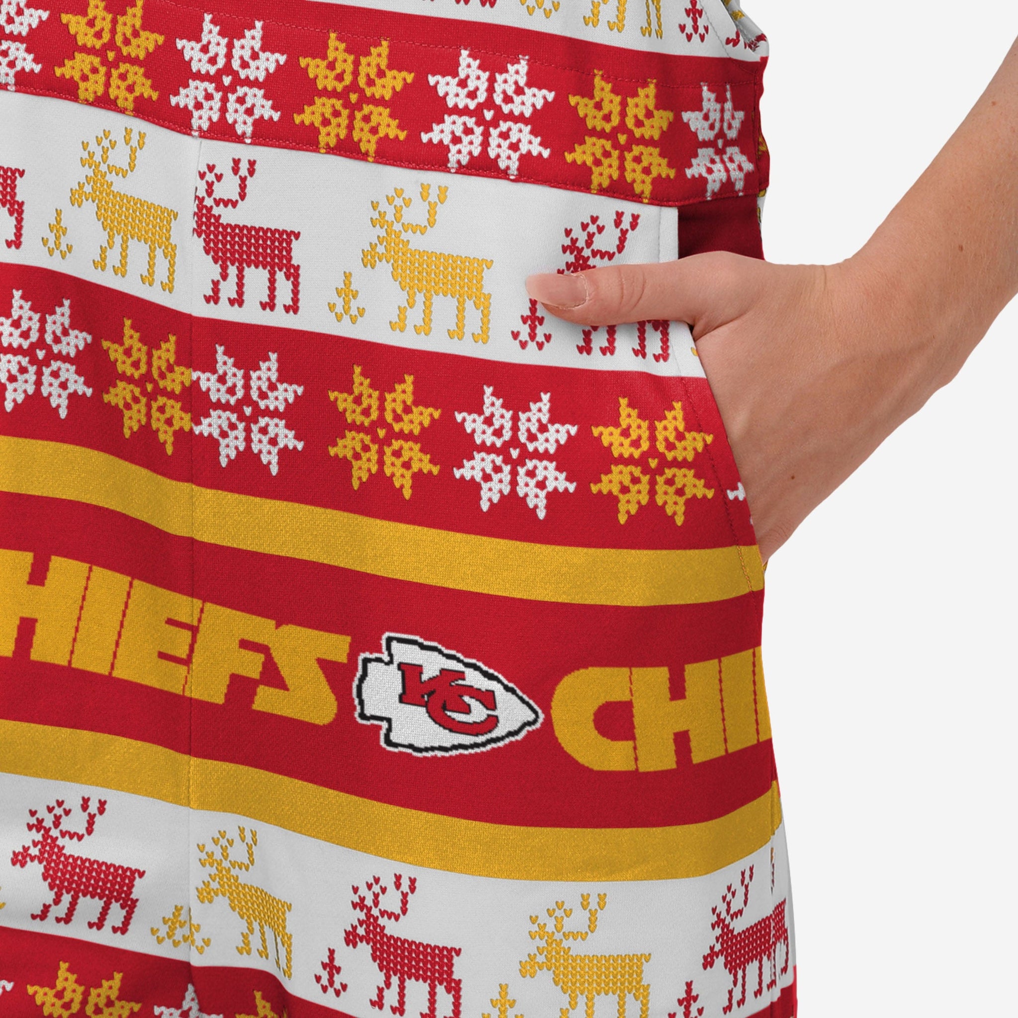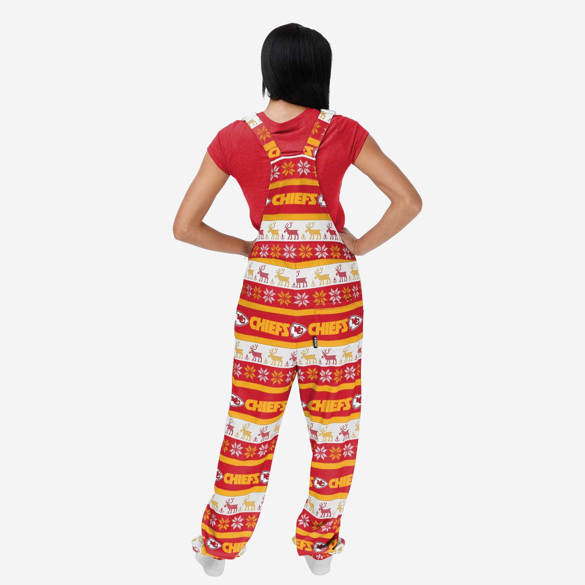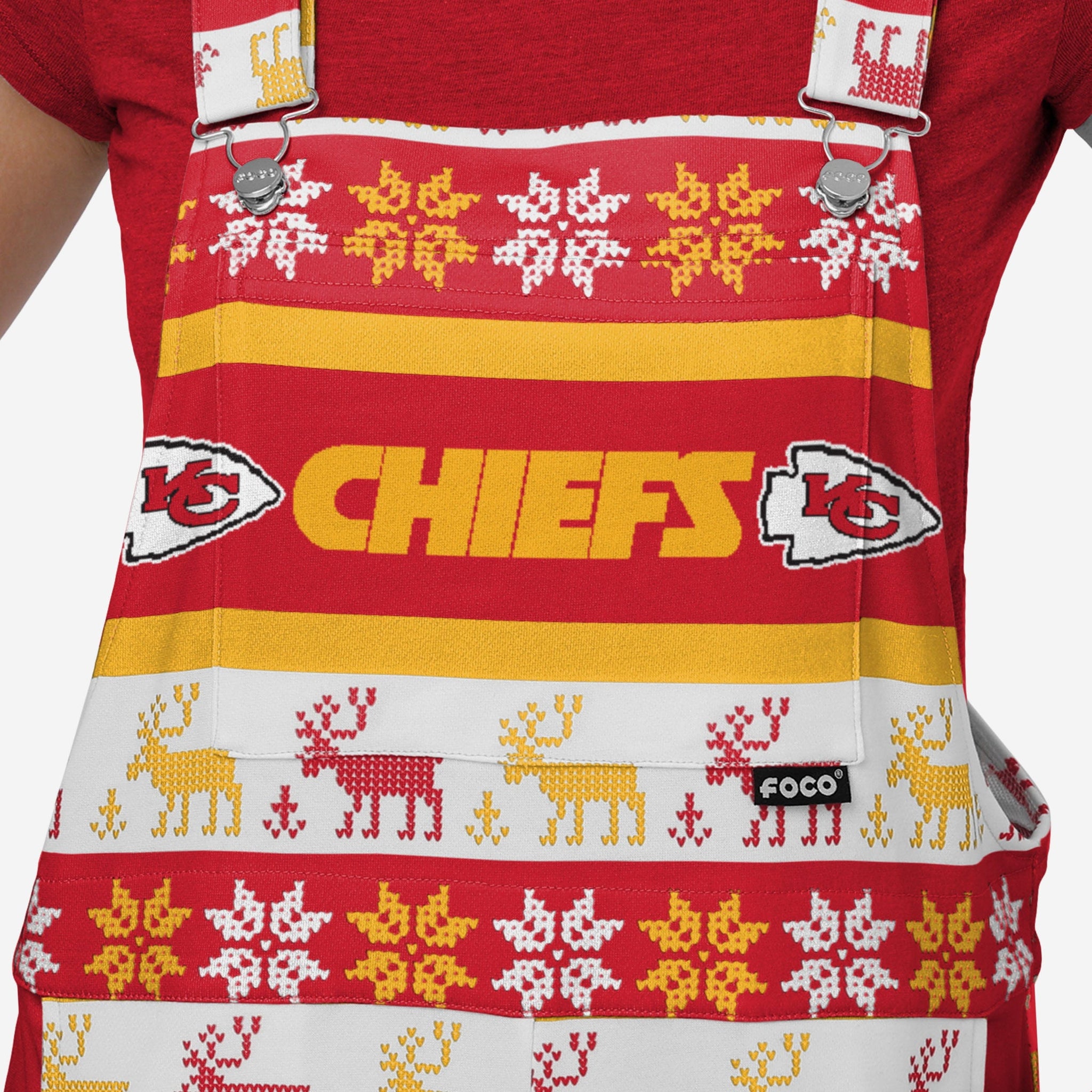 Show your team spirit in these stylish and comfortable Kansas City Chiefs Women's Ugly Home Gating Bib Overalls. With their all-over team-colored design and bold team logo display, these overalls are the perfect way to show your support for the Kansas City Chiefs while showing off some beautiful style akin to your favorite ugly sweater that's perfect for the holidays, but will help you stand out year-round.