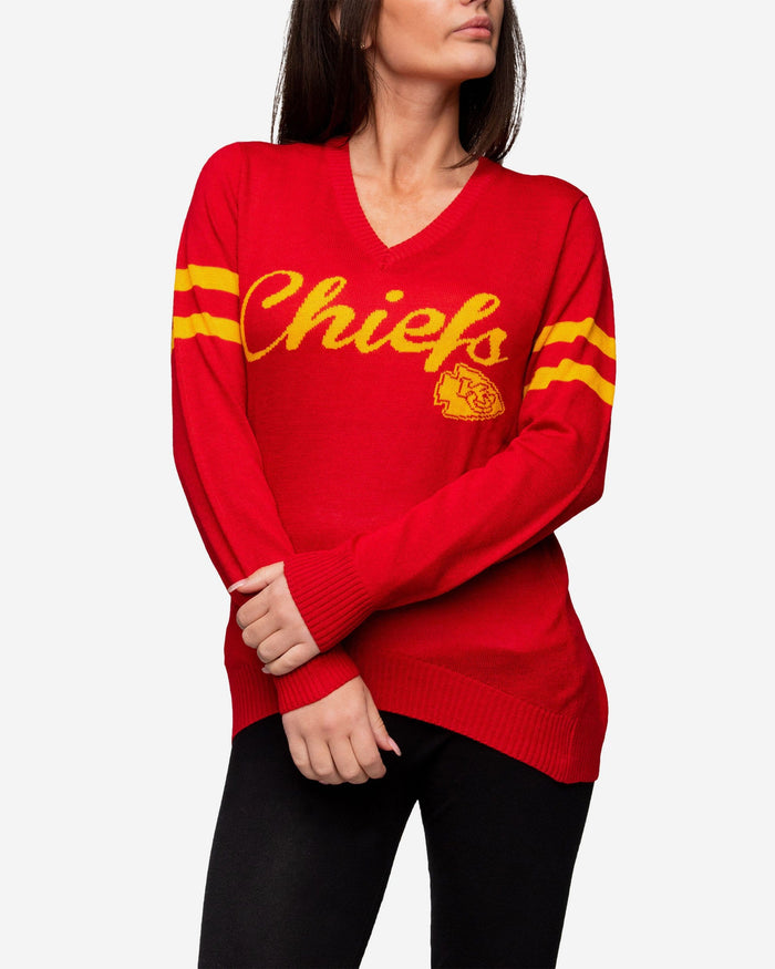 You lose your voice cheering on your team at every game. You've dyed your hair in your team colors. You're locked in on gameday, and are ready to watch hours of postgame coverage after every hard-fought victory. You're a real fan. You've earned your stripes. Now it's time to show them off in this Kansas City Chiefs Women's Vintage Stripe Sweater.