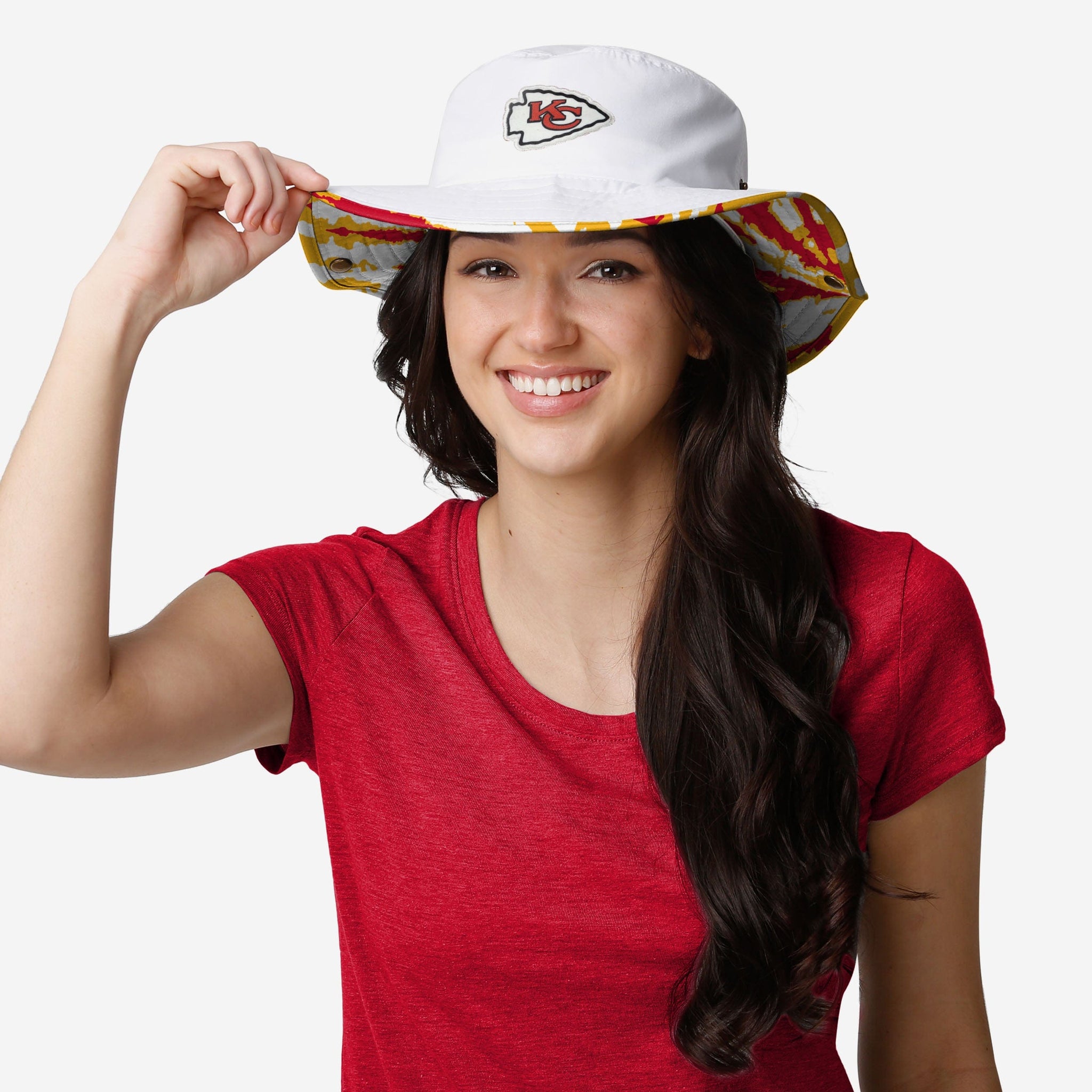 On those toasty, sunny days, your team has you covered! Literally. Assemble the most fashionable fit when you're on the go and keep cool with this Kansas City Chiefs Women's White Hybrid Boonie Hat!
