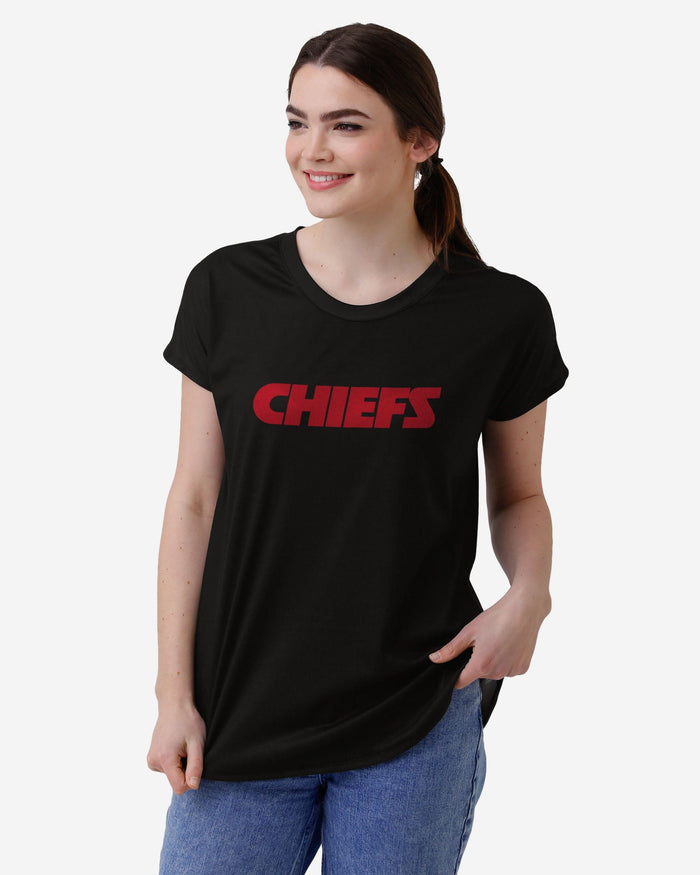 Pink? Orange? No. BLACK is the new black. Don't believe us? The heads you'll be turning when you're rocking this Kansas City Chiefs Women's Wordmark Black Tunic Top is all the proof you need.