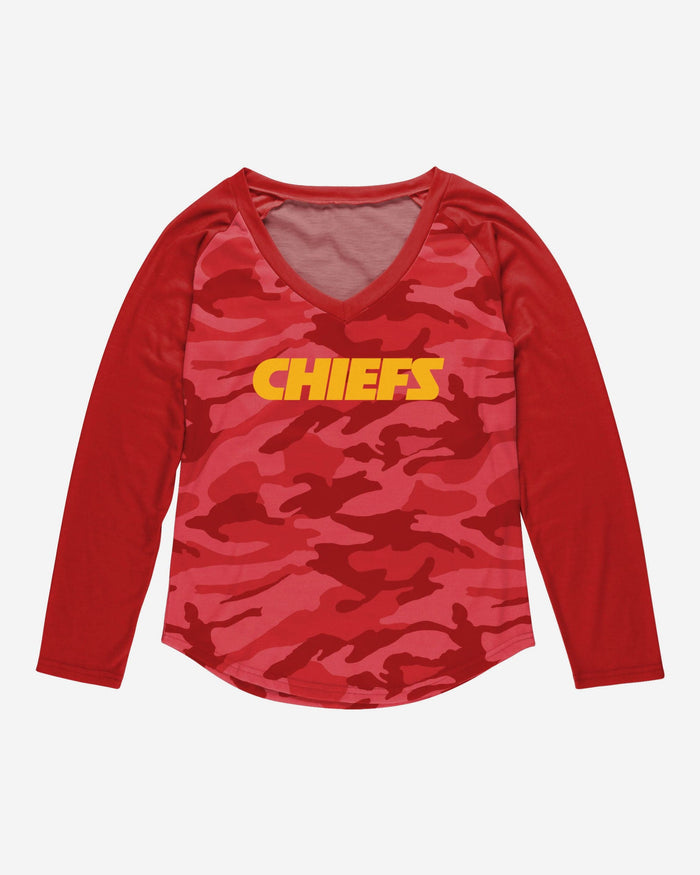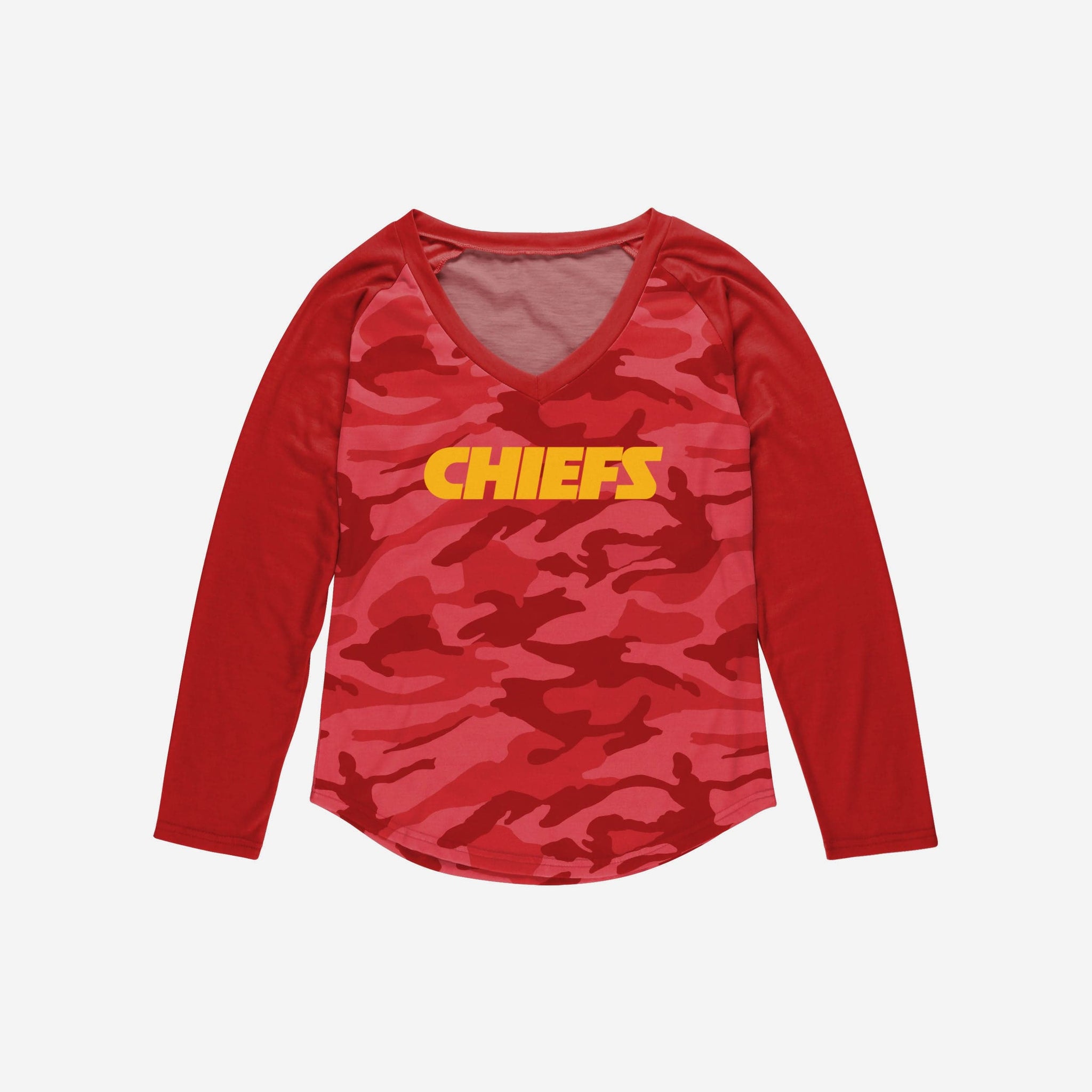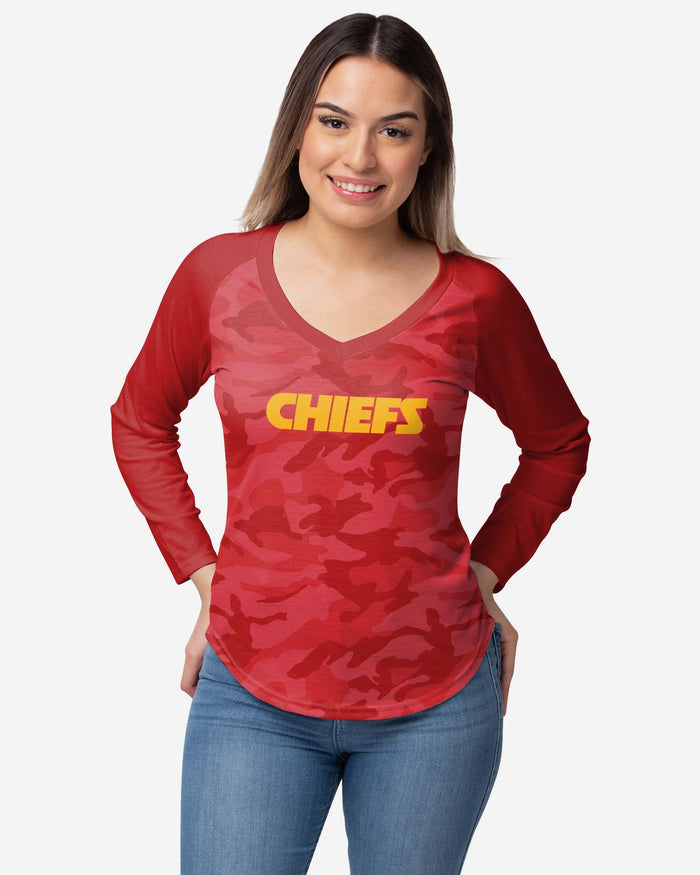 Despite its sleek camouflage design, when you're rocking this Kansas City Chiefs Women's Wordmark Tonal Camo Raglan T-Shirt, you won't blend in with the crowd - You'll stand out.