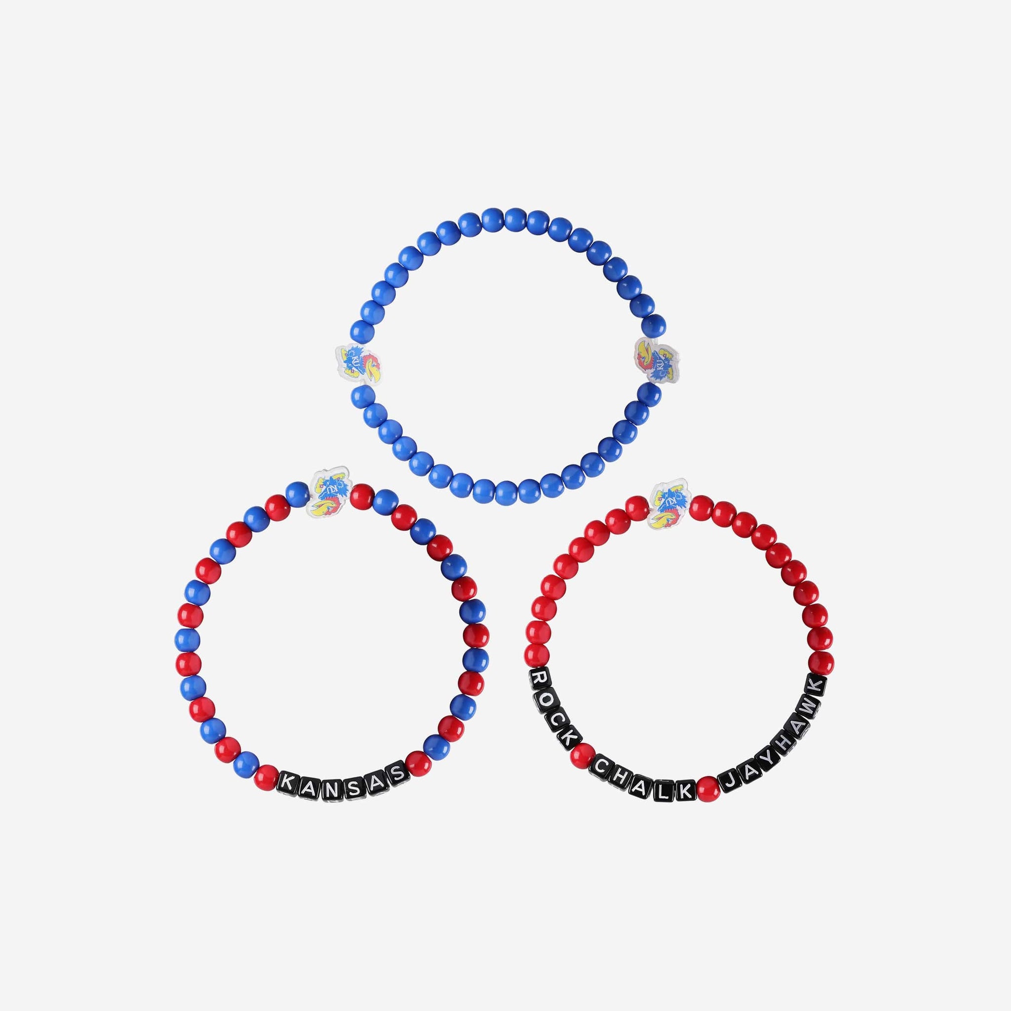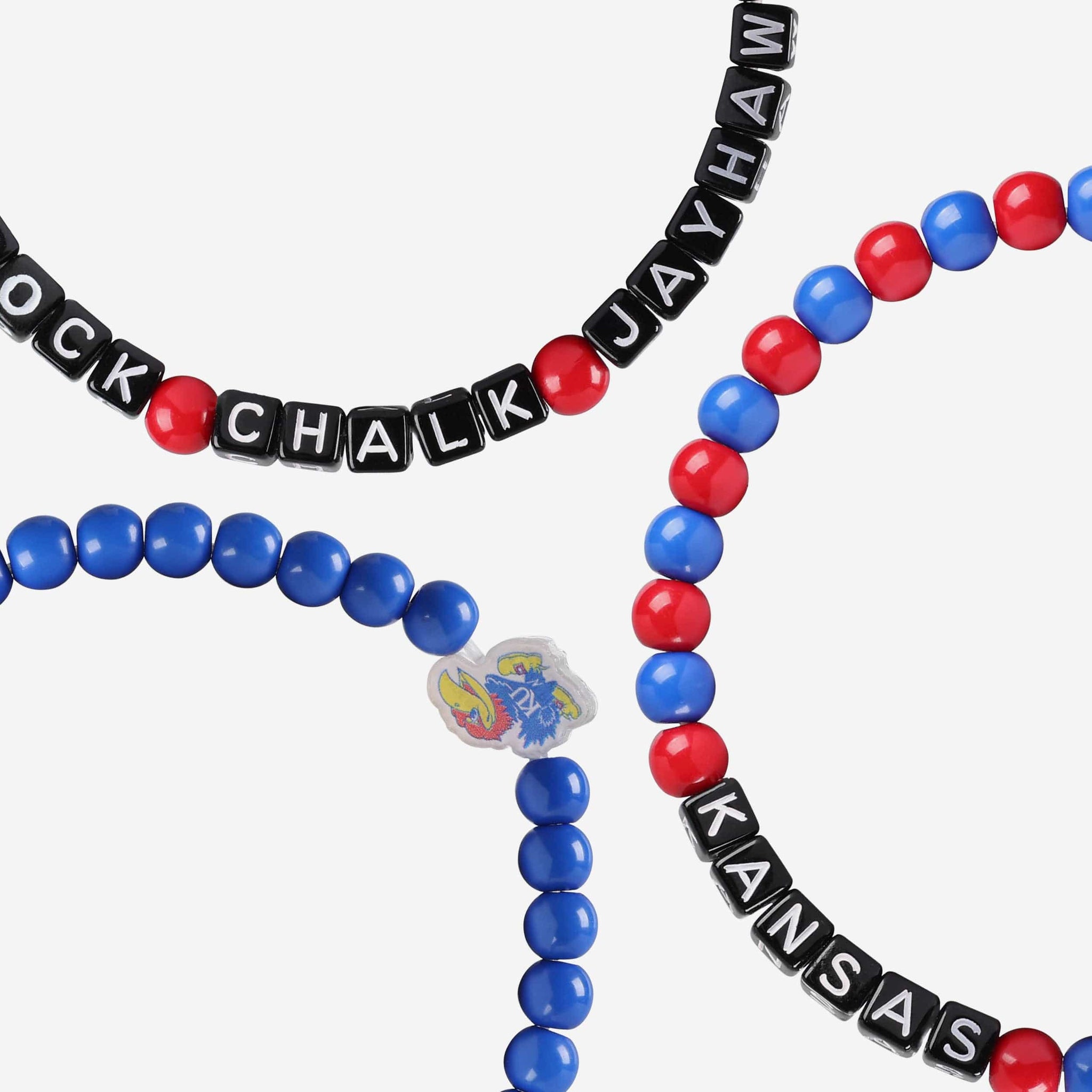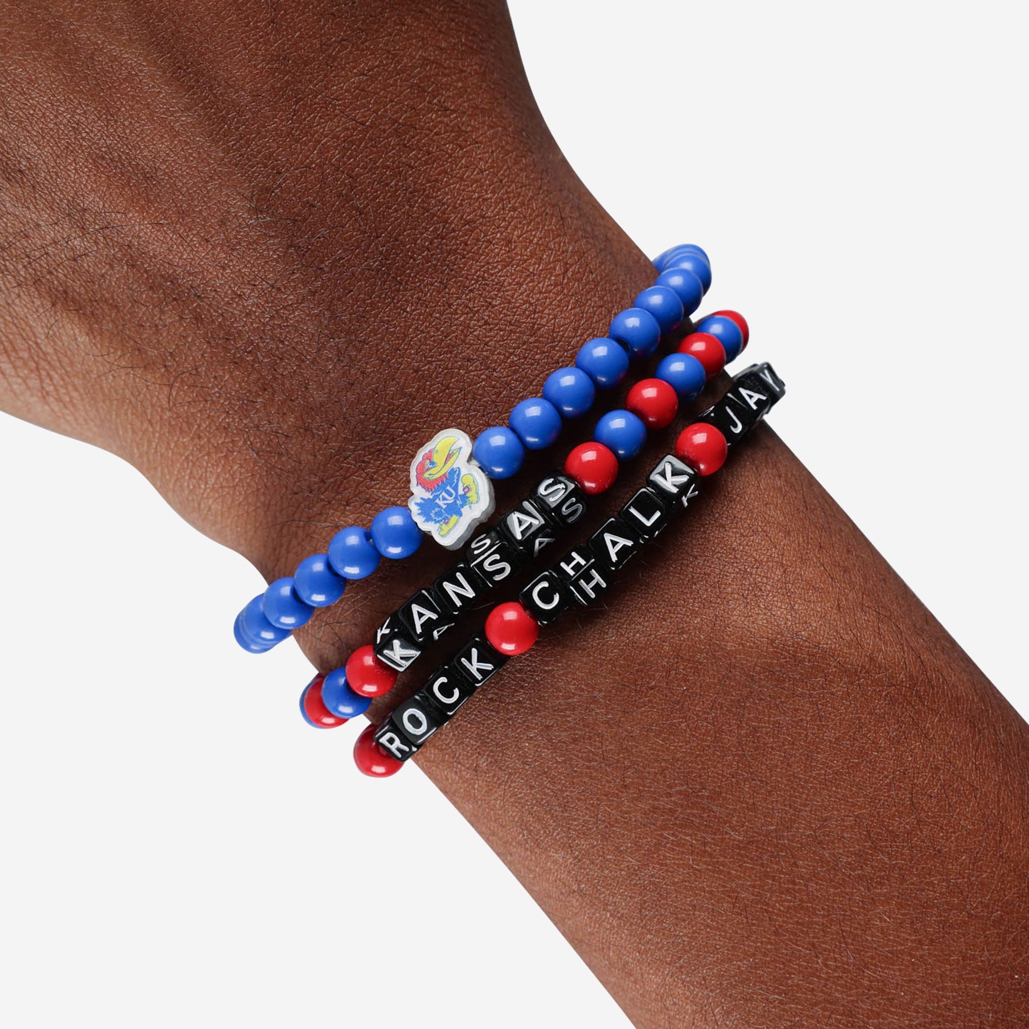 A whole new way to rep the team in style is here. Step up your fan fashion sense with this Kansas Jayhawks 3 Pack Beaded Friendship Bracelet. These matching friendship bracelets have an all-over team-colored design and team logo displays, which makes them the perfect way to show your support for the Kansas Jayhawks on gamedays and every day in between.