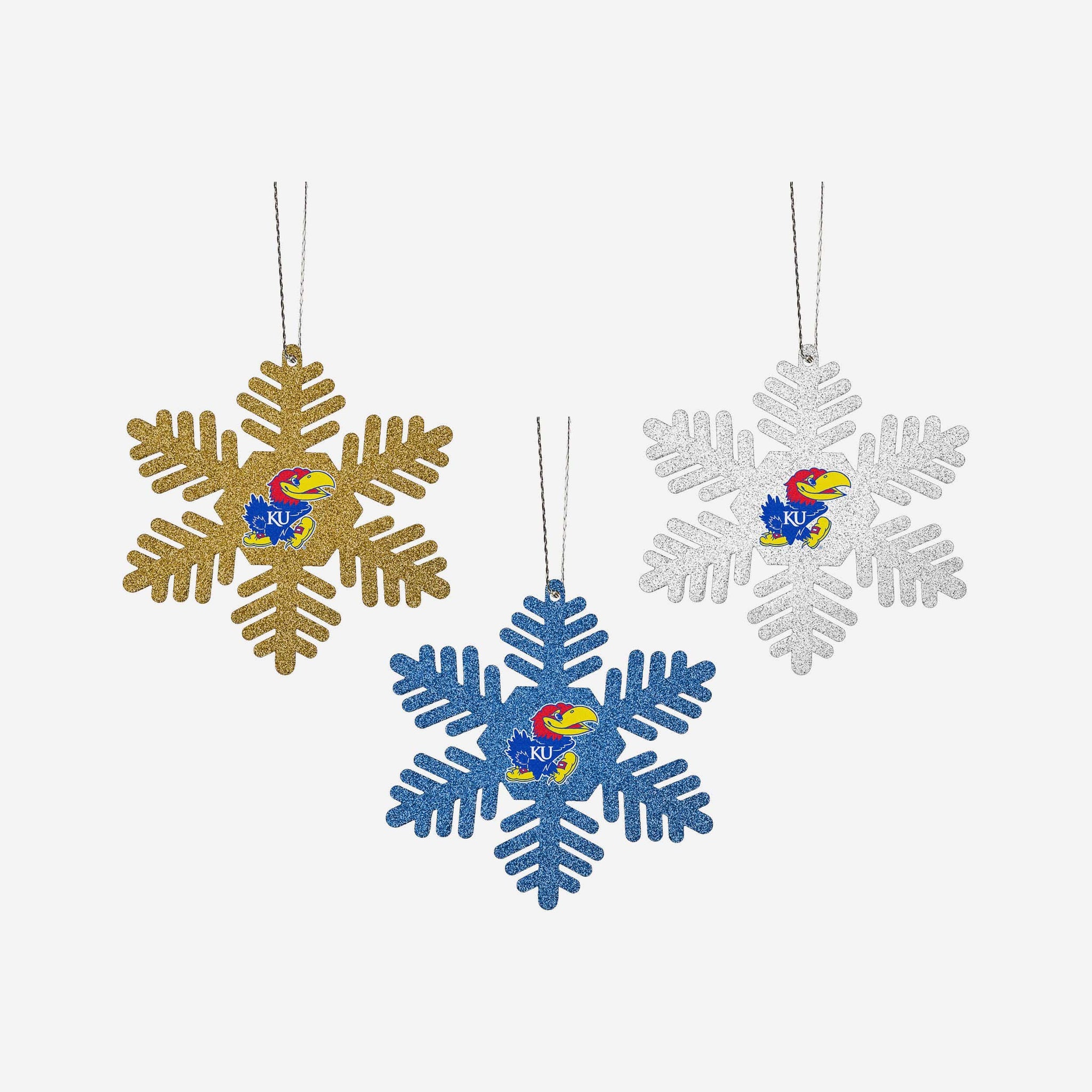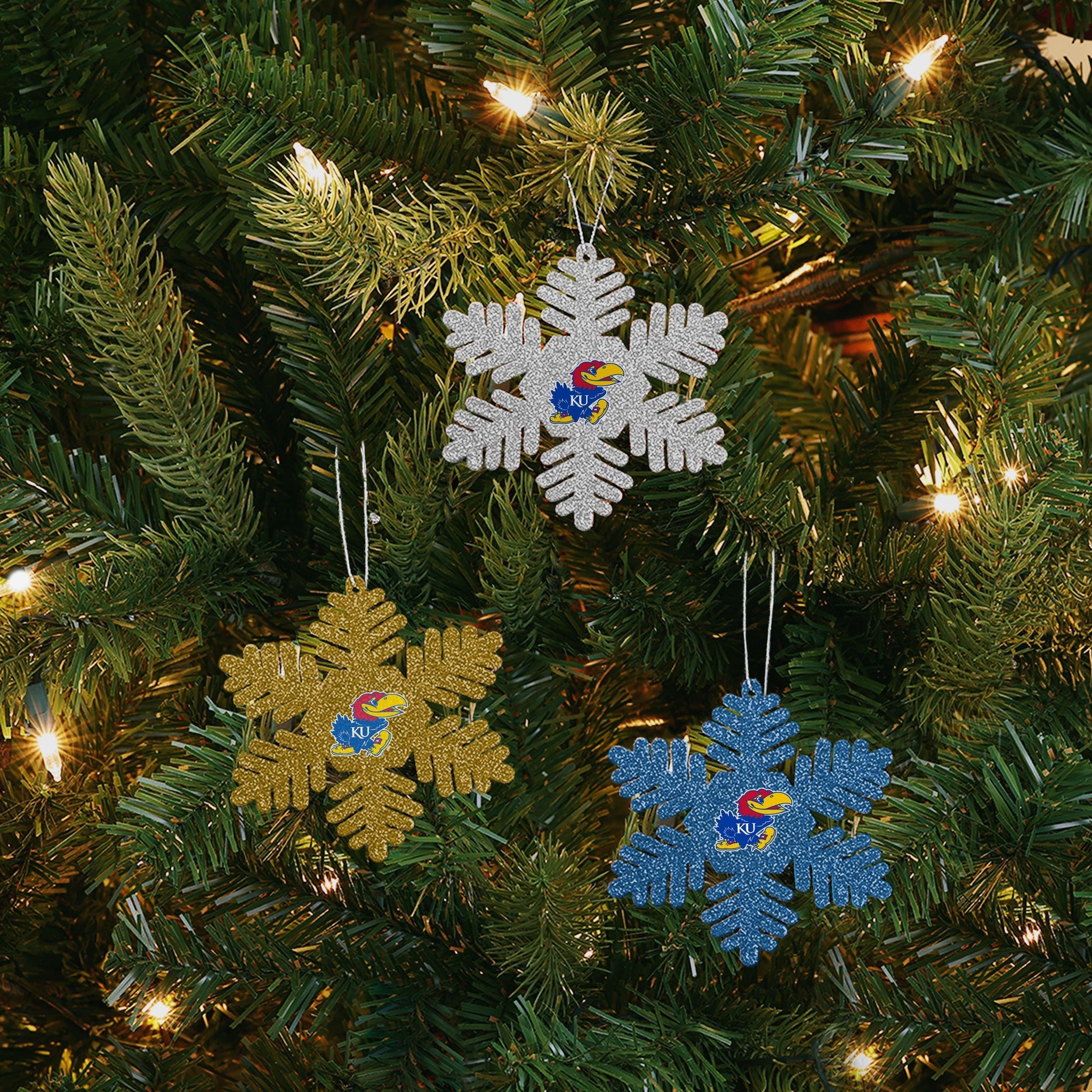 Kansas Jayhawks 3 Pack Metal Glitter Snowflake Ornament FOCO - FOCO.com