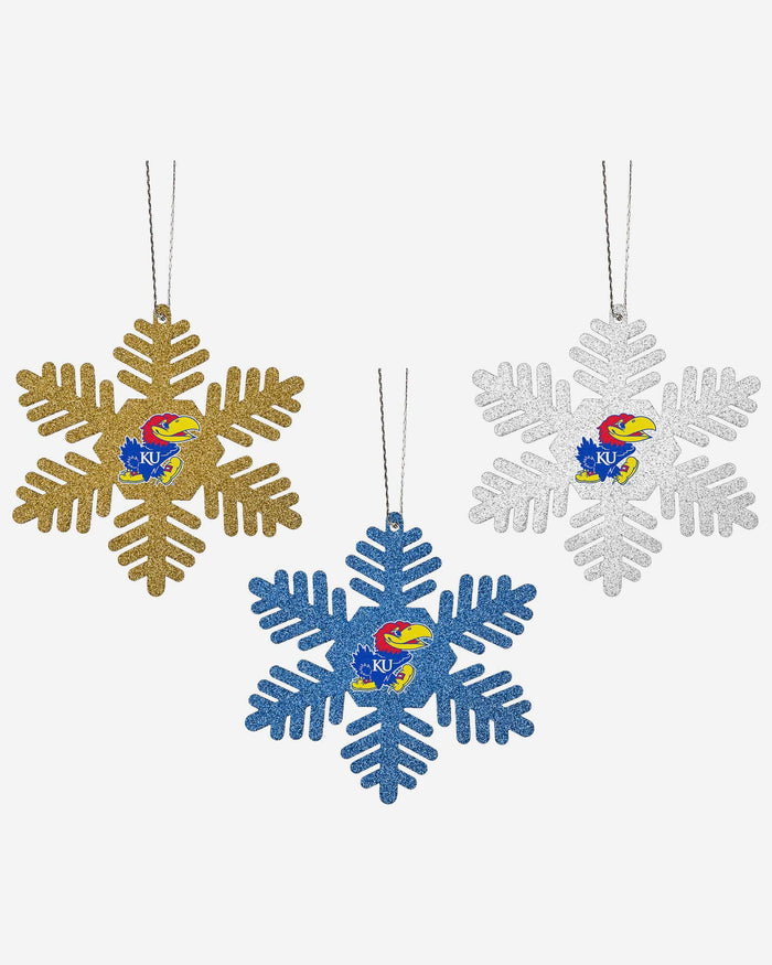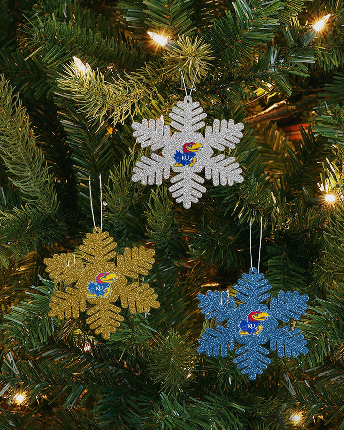 Kansas Jayhawks 3 Pack Metal Glitter Snowflake Ornament