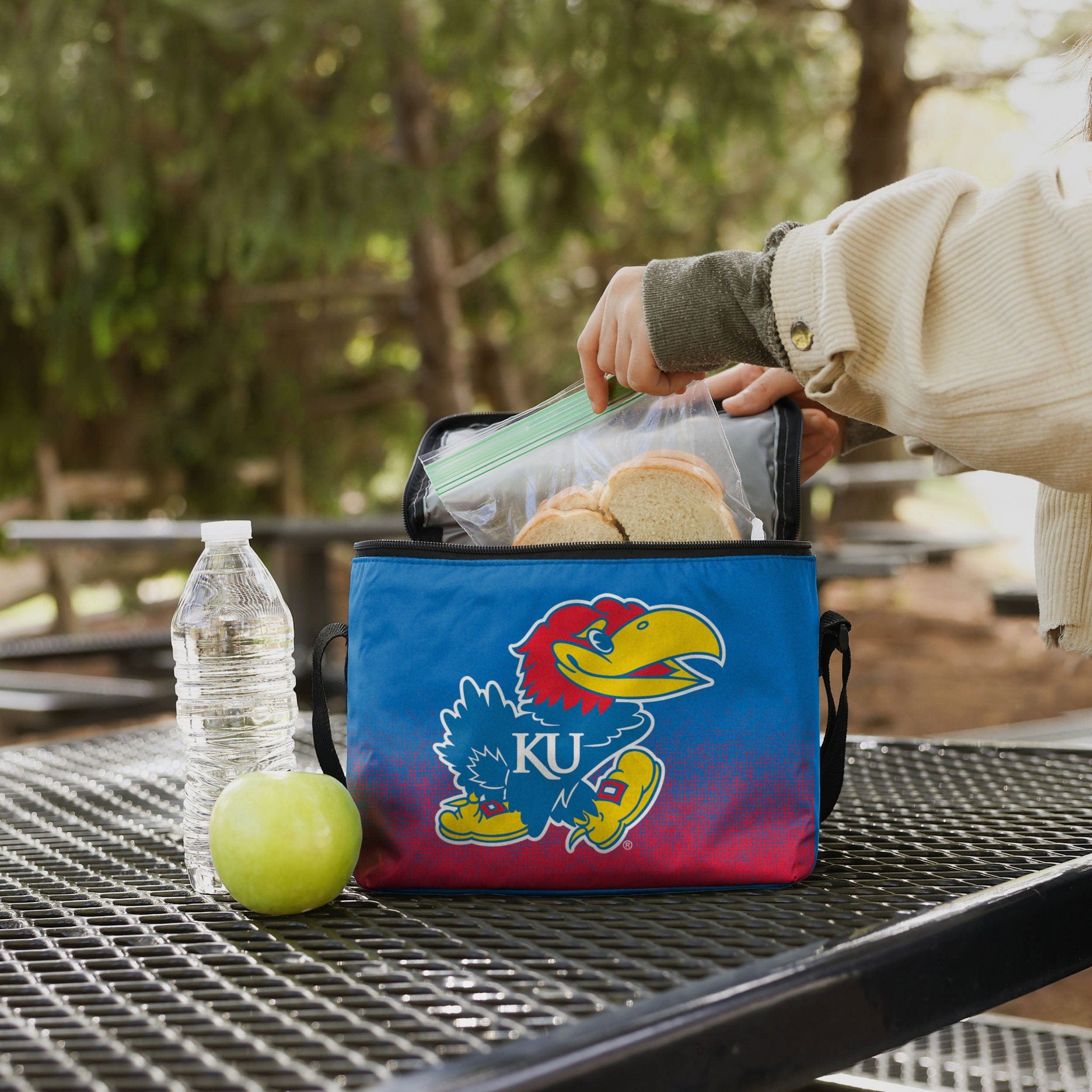 There are two things you never show up to a tailgate without: your team spirit, and the drinks. This Kansas Jayhawks Big Logo Gradient 6 Pack Cooler has you covered for both. Big enough to store a 6-pack of awesomeness.