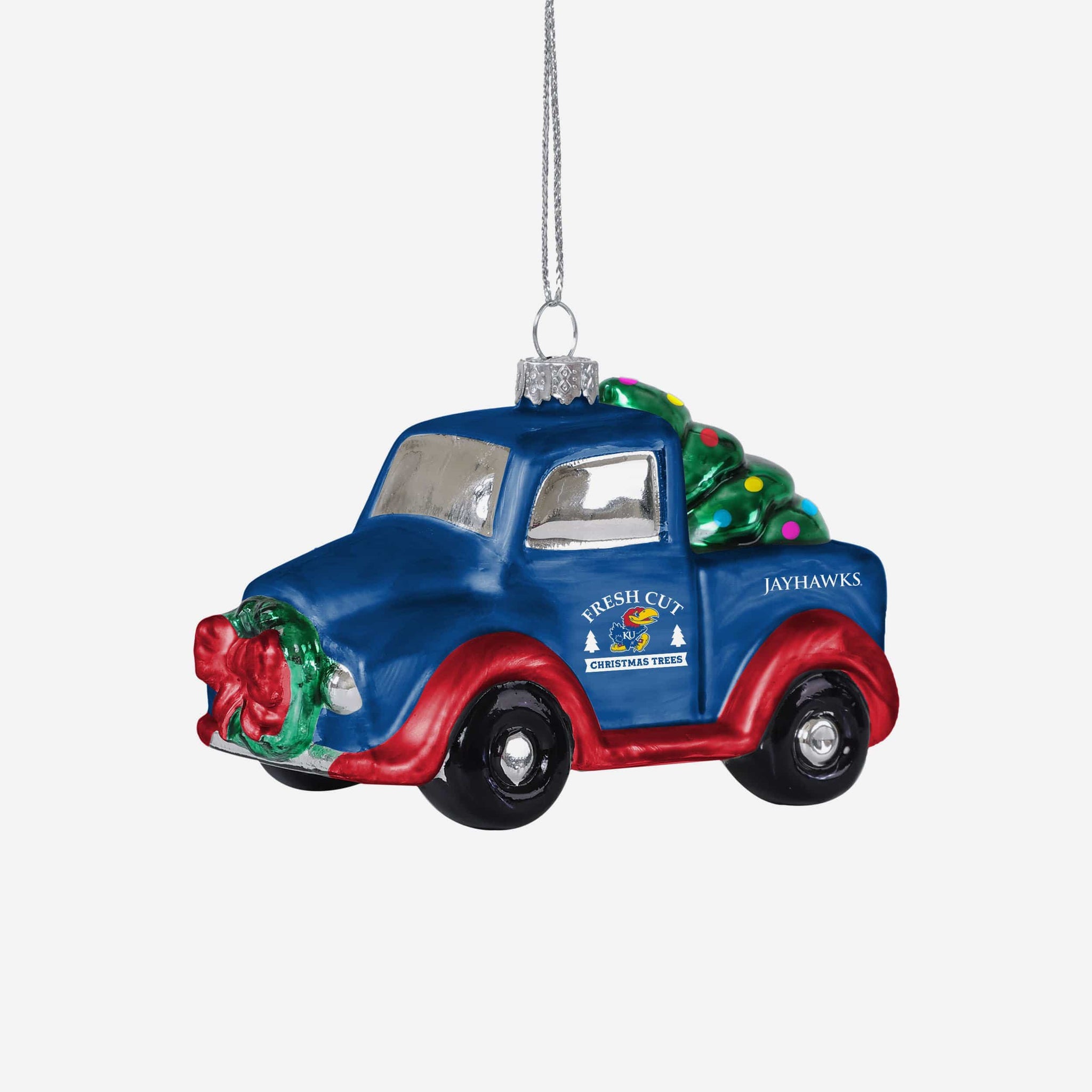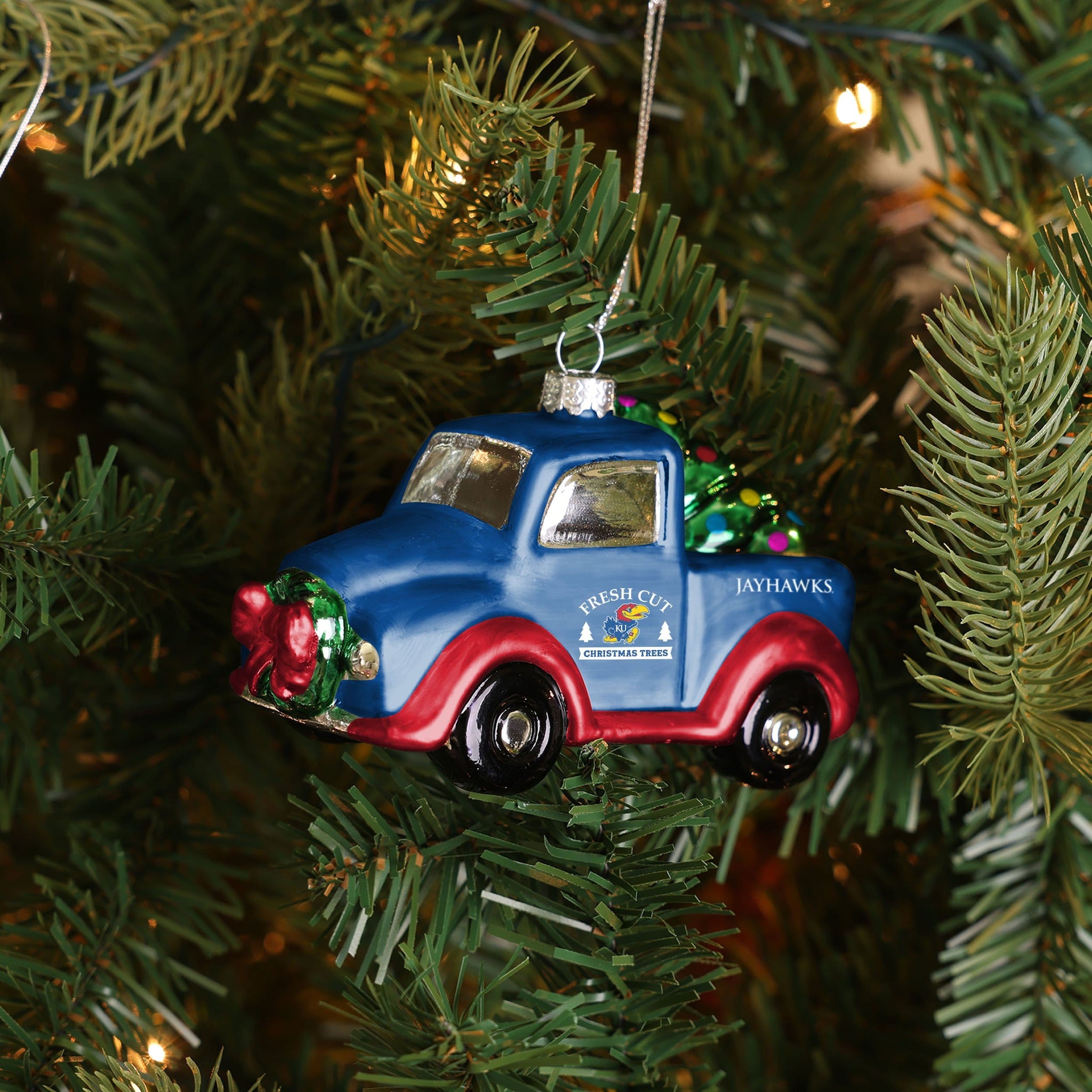 Want to make sure your Christmas tree keeps on truckin' for the holidays? You're in luck thanks to this Kansas Jayhawks Blown Glass Truck!